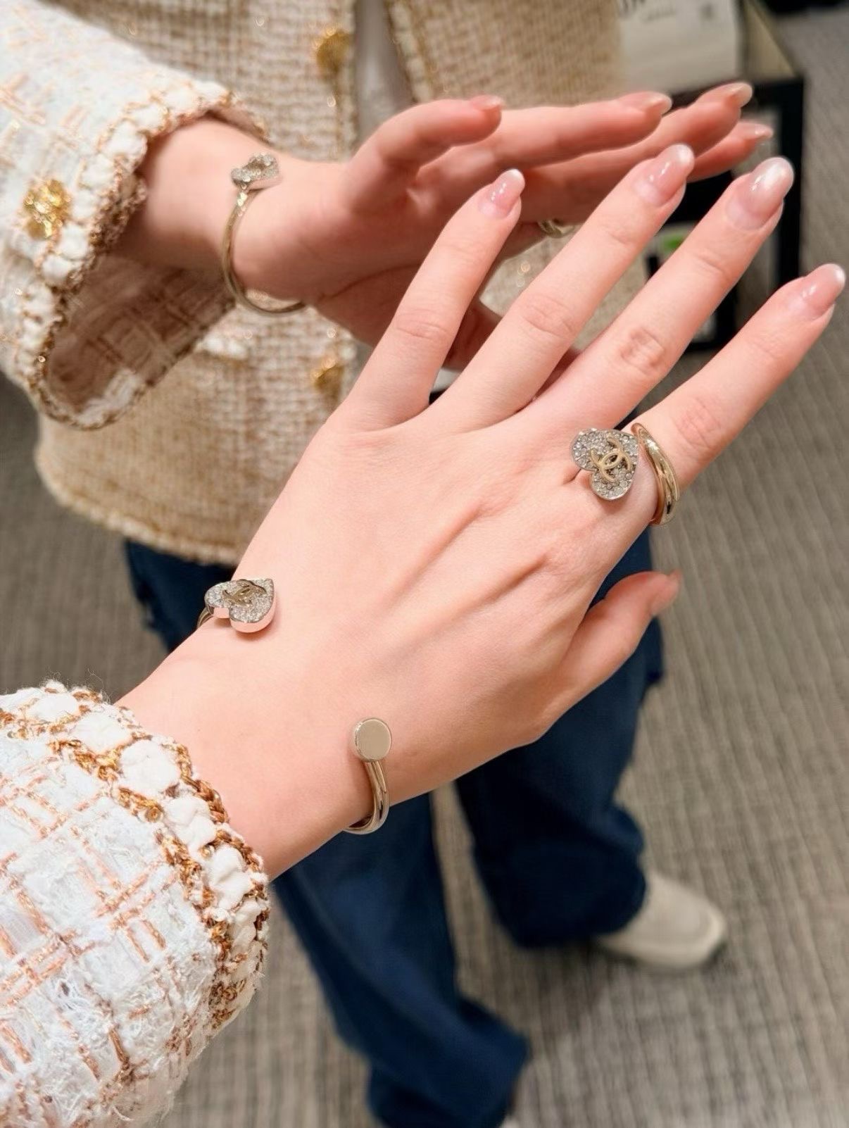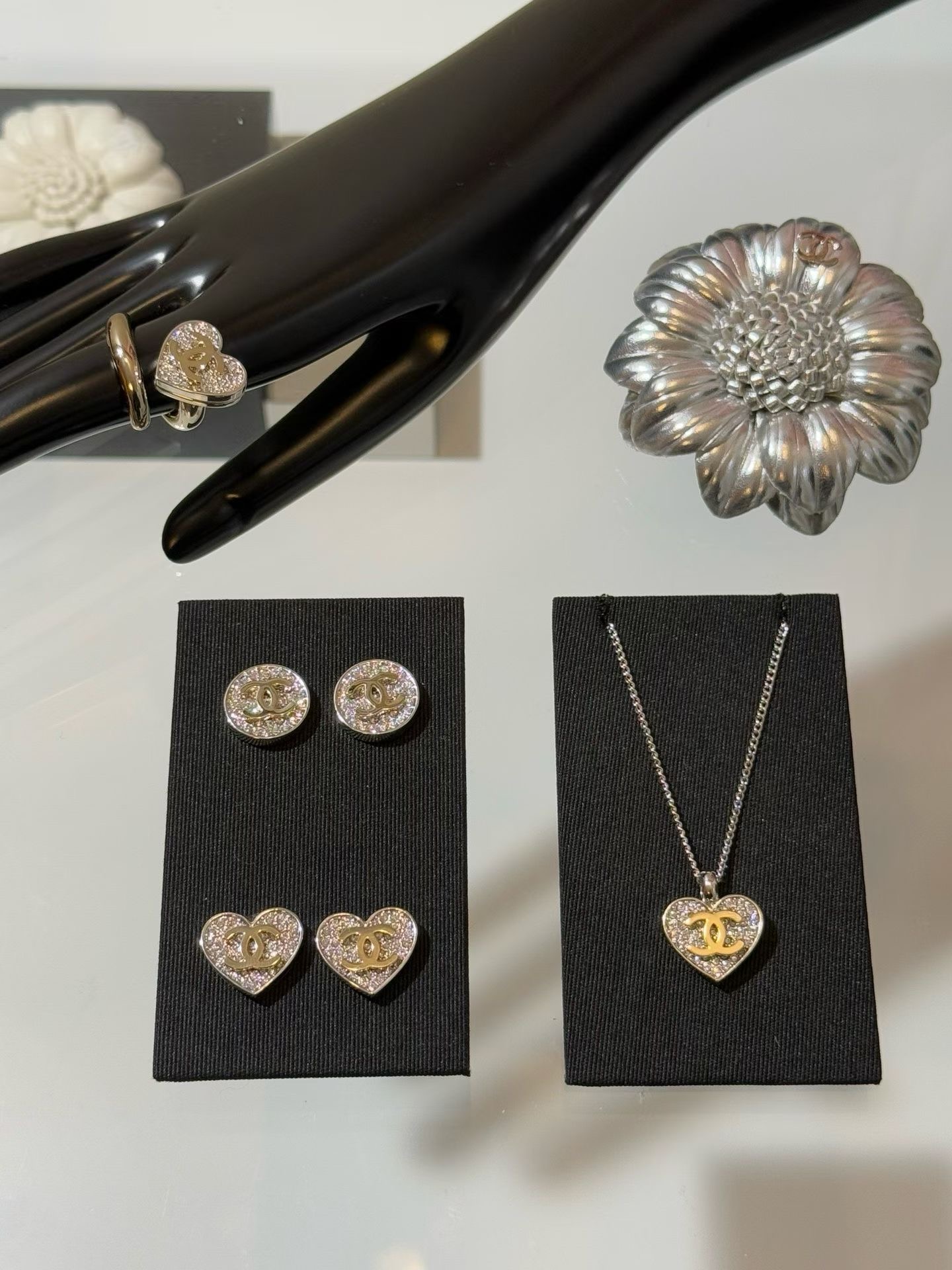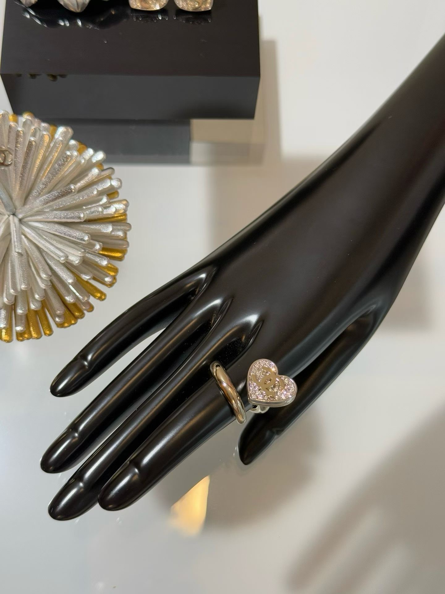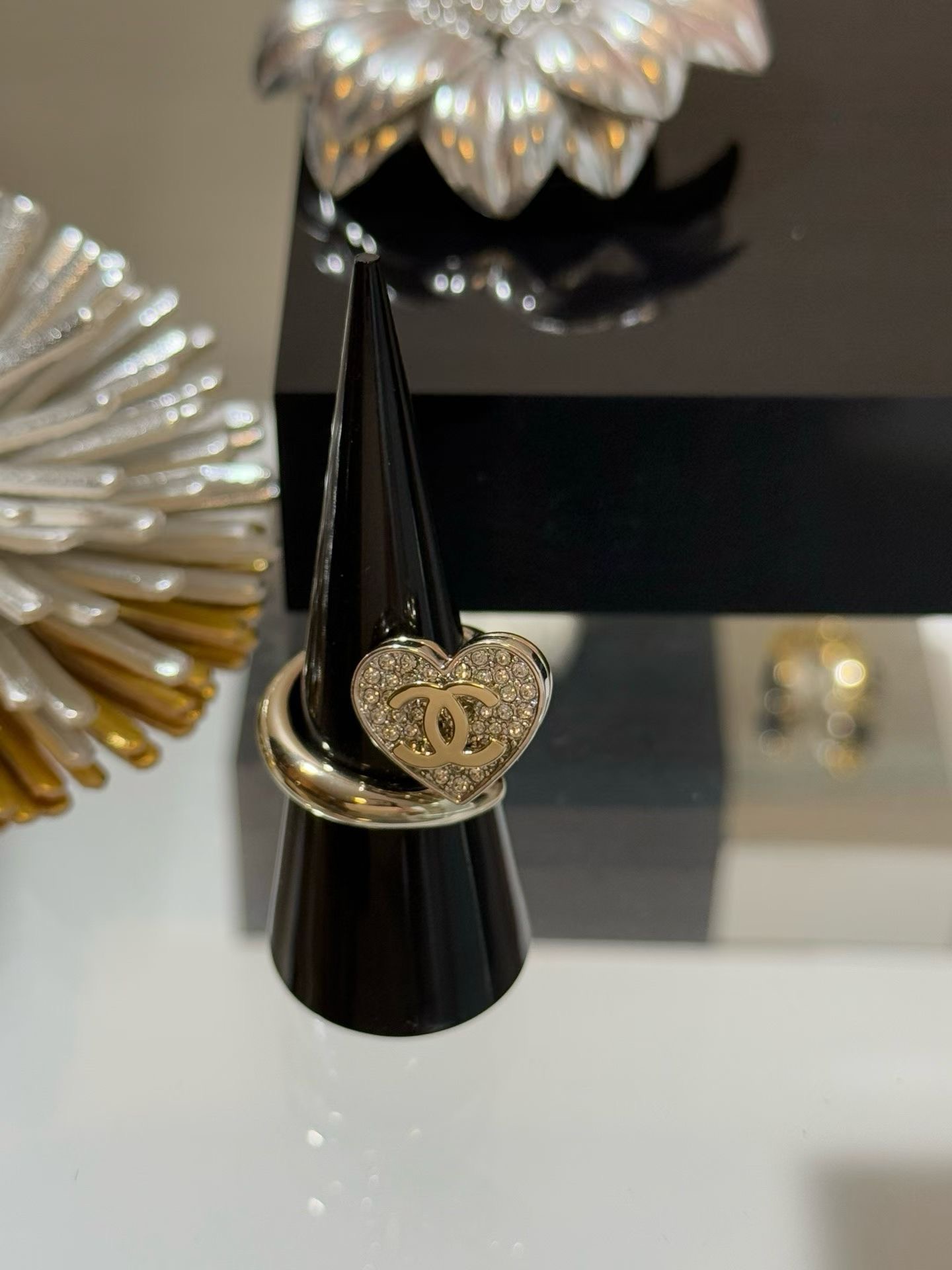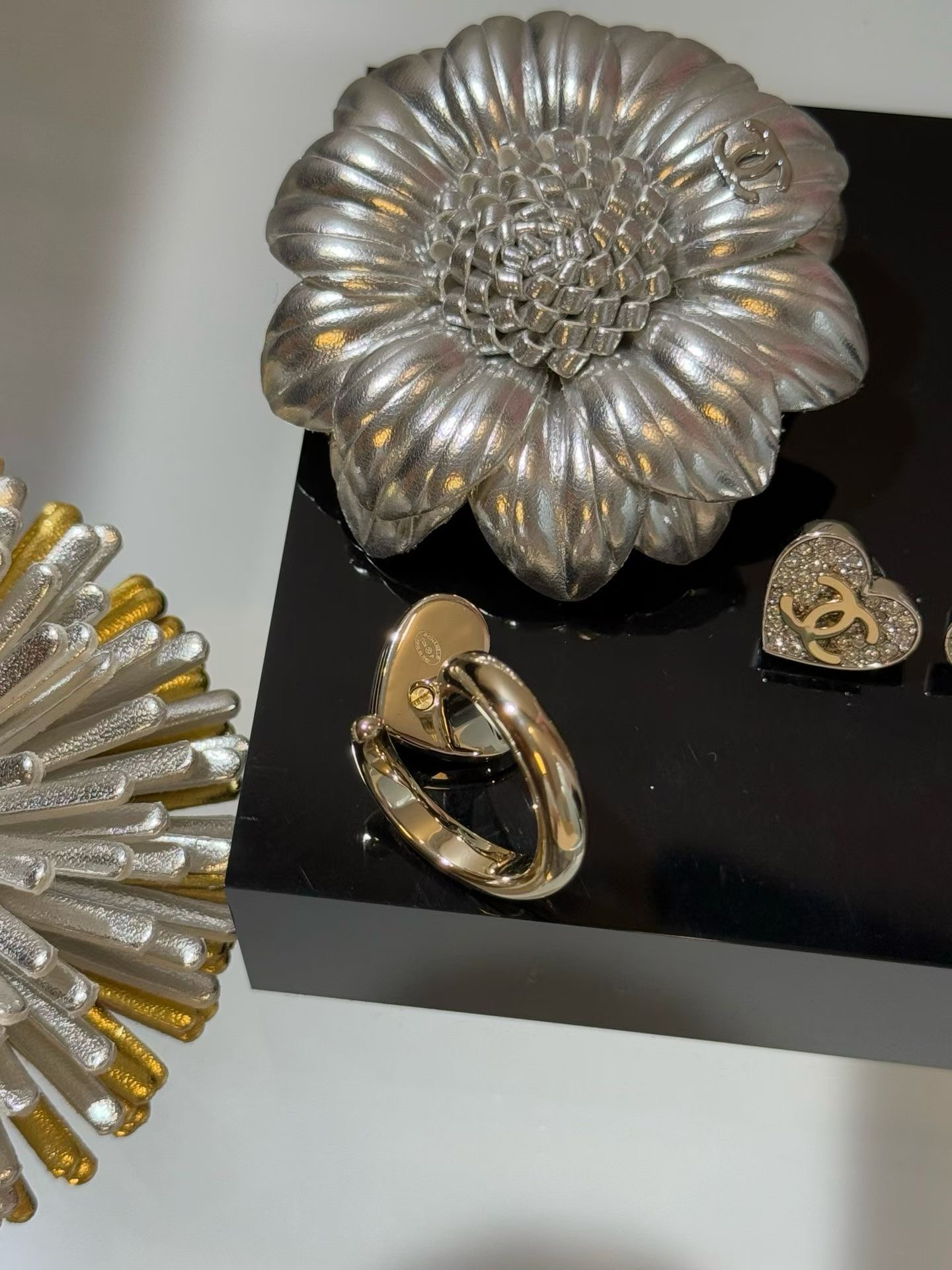 CHANEL 26P 링 [제품번호]ABH153 [색상]골드 & 실버 [재질] 메탈, 스트라스 [사이즈] 6,7,8 최고급퀄리티 각인유 ,풀박스배송 2가지 모델의 이어링, 브레이슬릿, 네크리스까지 세트구성도 가능합니다. 목걸이 168000 귀걸이 158000 팔찌 198000 브로치 168000