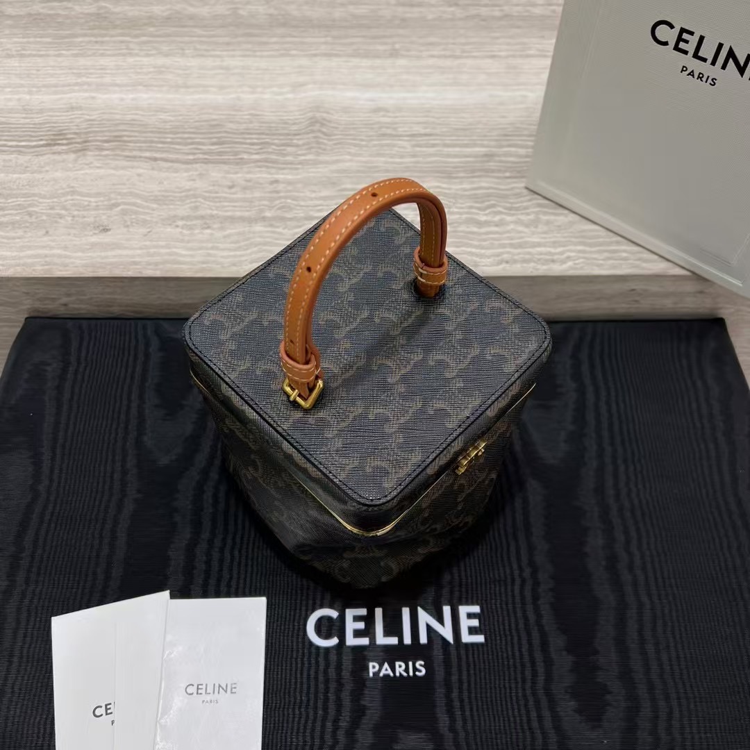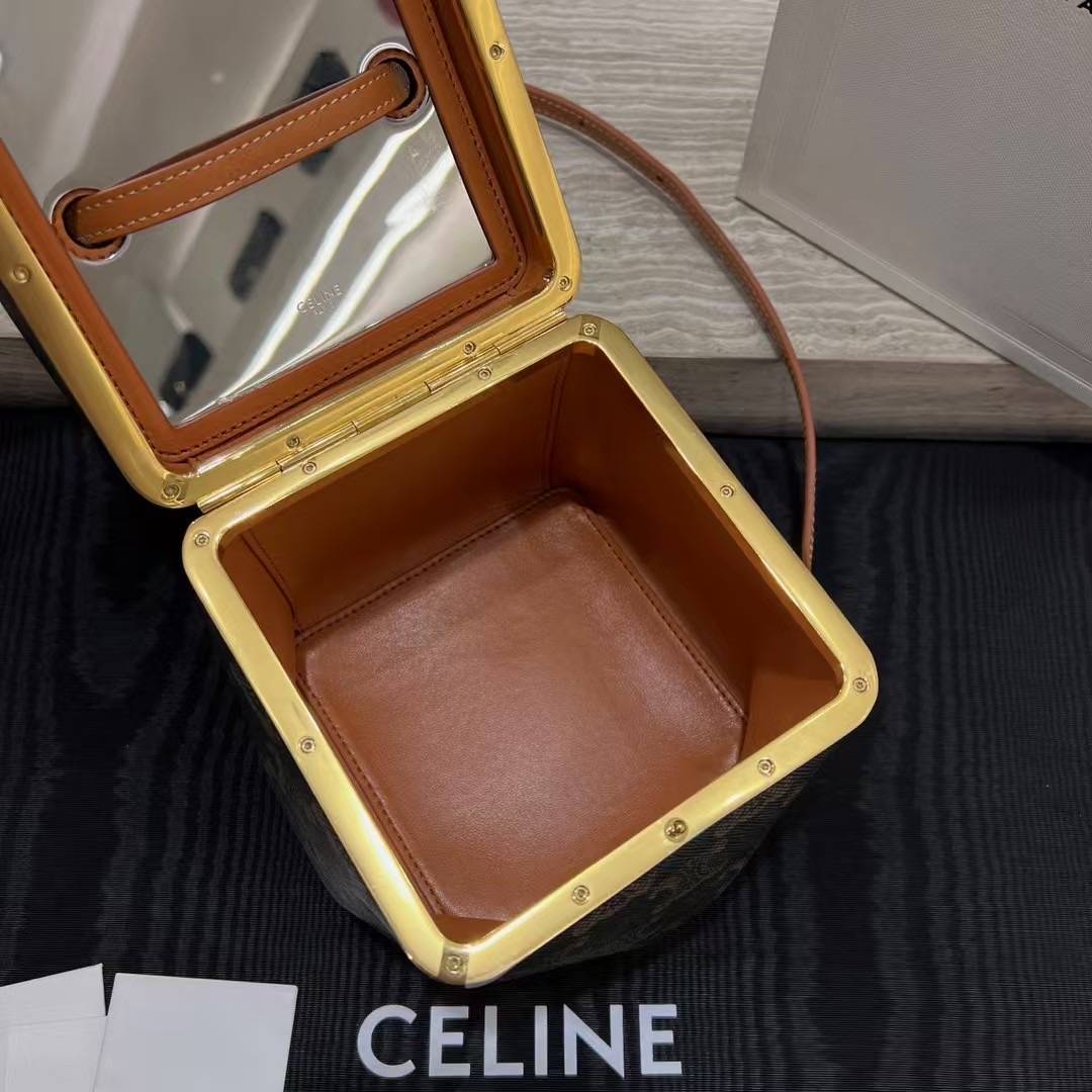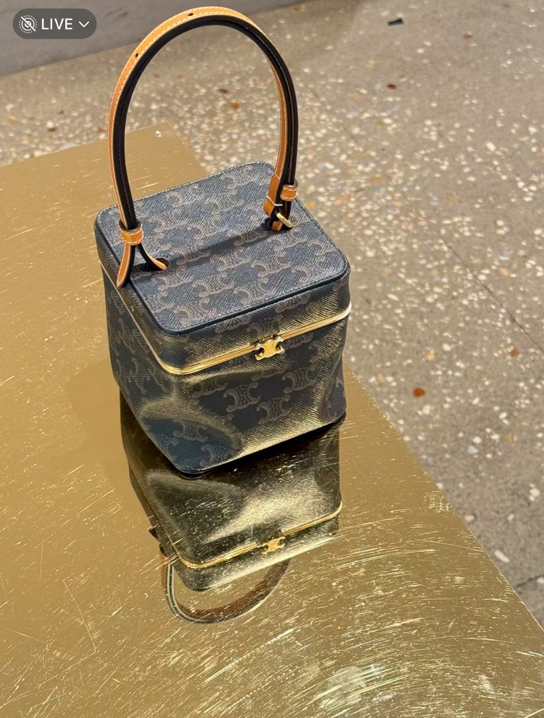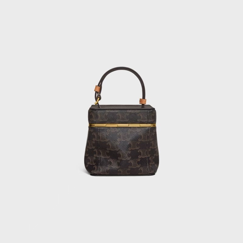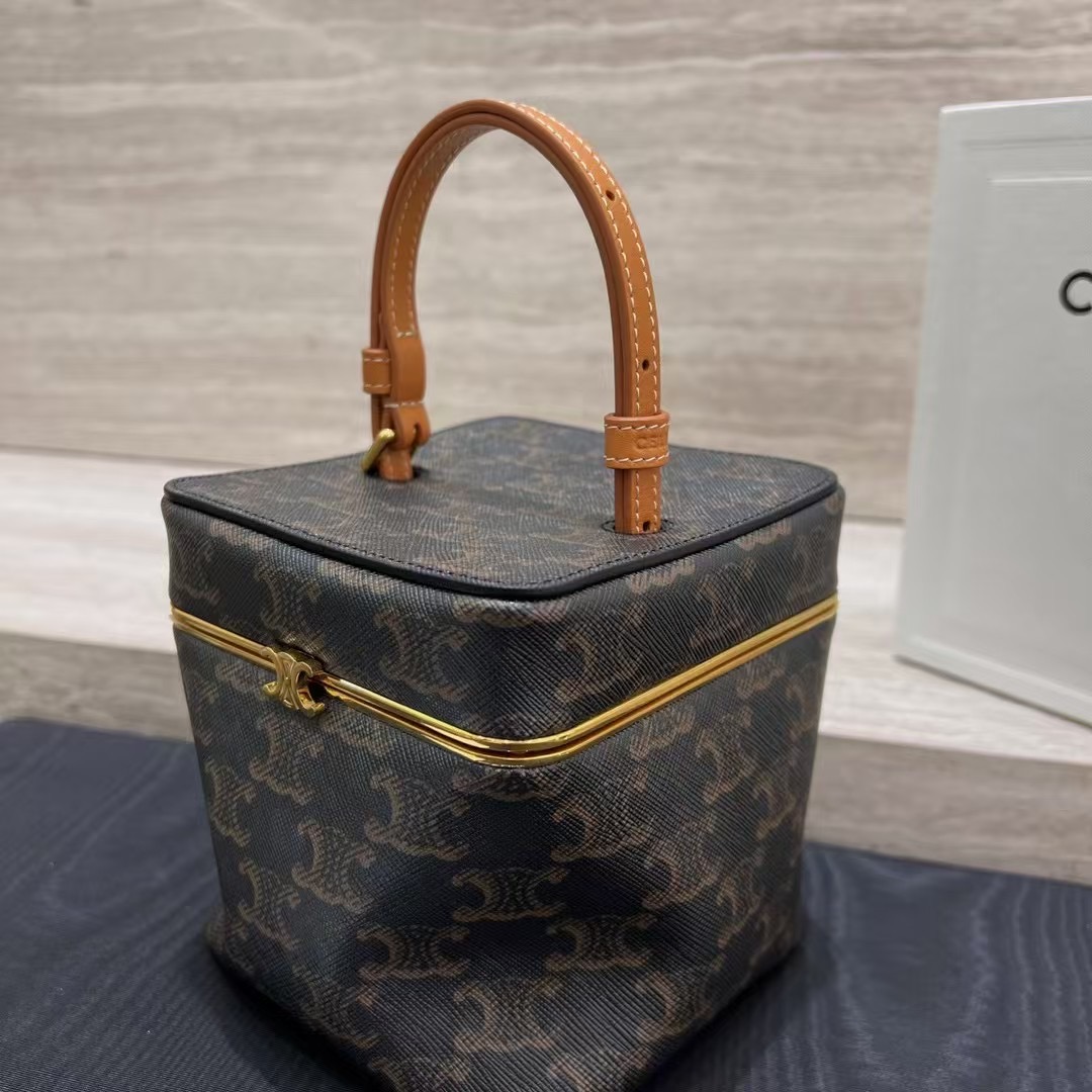 트리옹프 캔버스, 천연 송아지 가죽 트리밍 양가죽 안감 골드 마감 핸드 캐리, 엘보 캐리, 숄더 캐리 메인 수납공간 1개 이너 미러 1개 사이즈 : 가로12.5 x 세로12.5 x 높이12.5cm 최소 17cm, 최대 31cm 높이 조절 가능한 스트랩