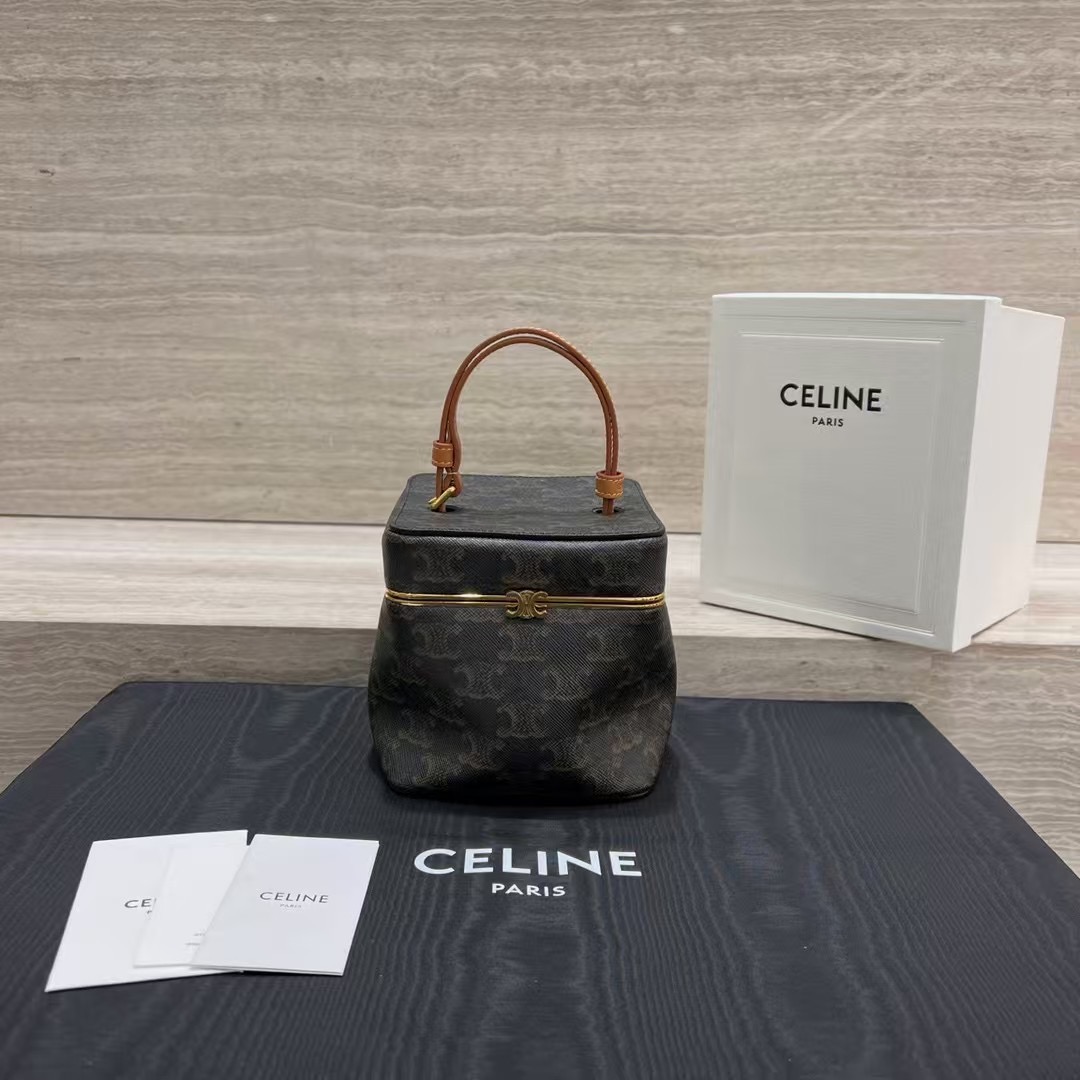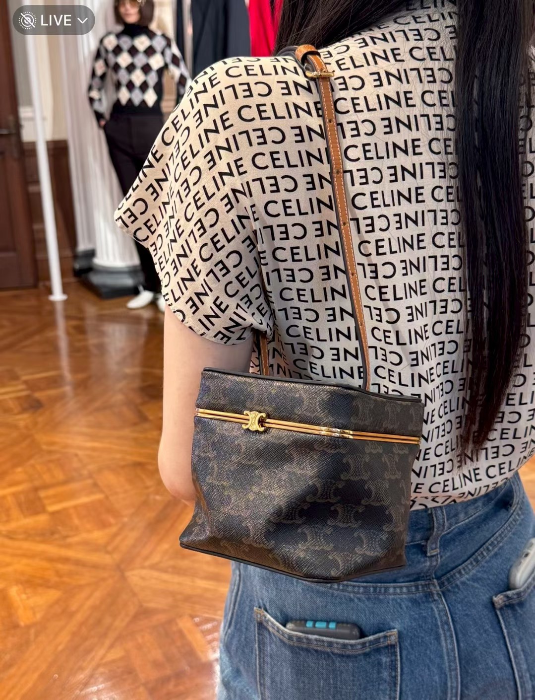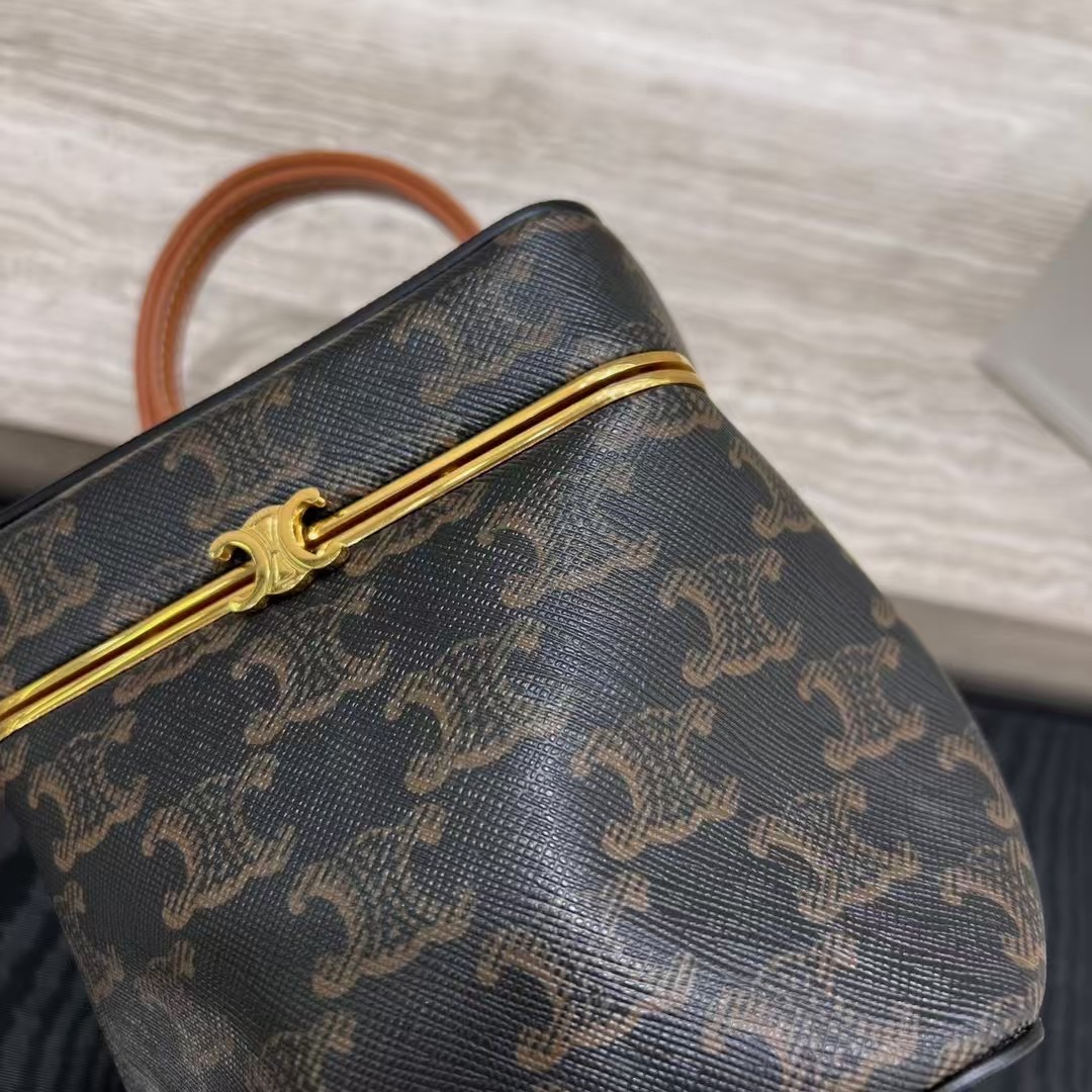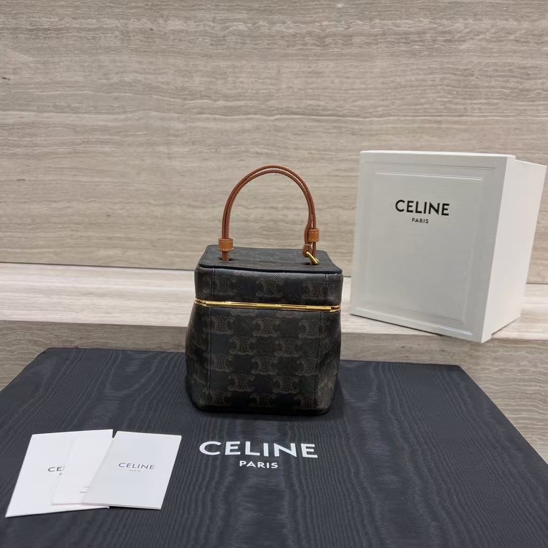 트리옹프 캔버스, 천연 송아지 가죽 트리밍 양가죽 안감 골드 마감 핸드 캐리, 엘보 캐리, 숄더 캐리 메인 수납공간 1개 이너 미러 1개 사이즈 : 가로12.5 x 세로12.5 x 높이12.5cm 최소 17cm, 최대 31cm 높이 조절 가능한 스트랩
