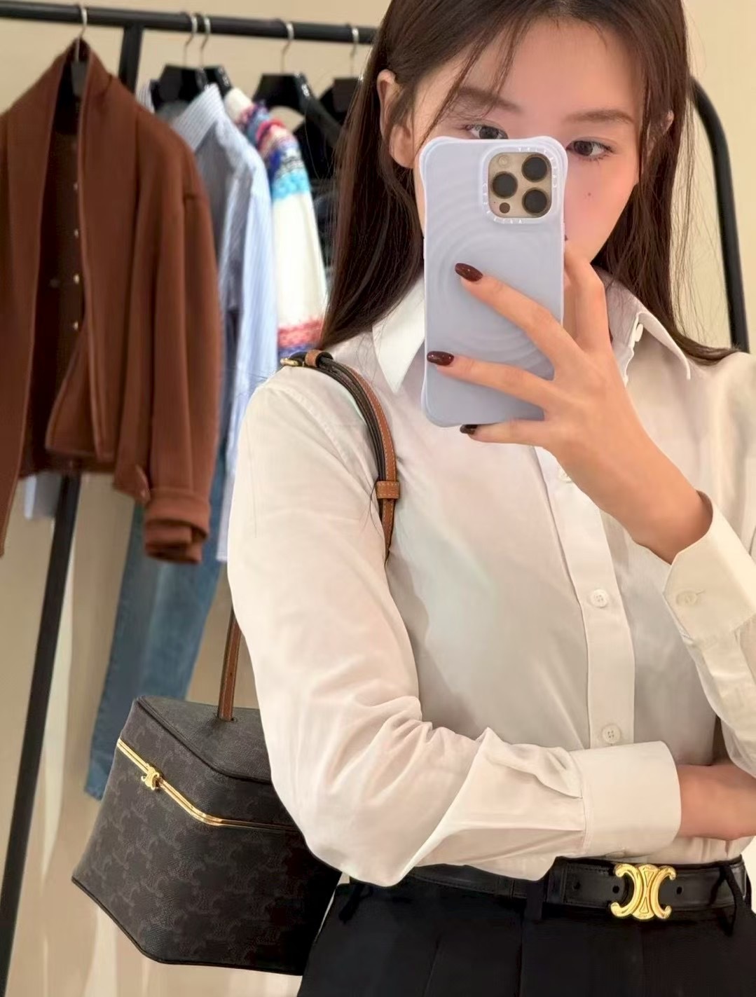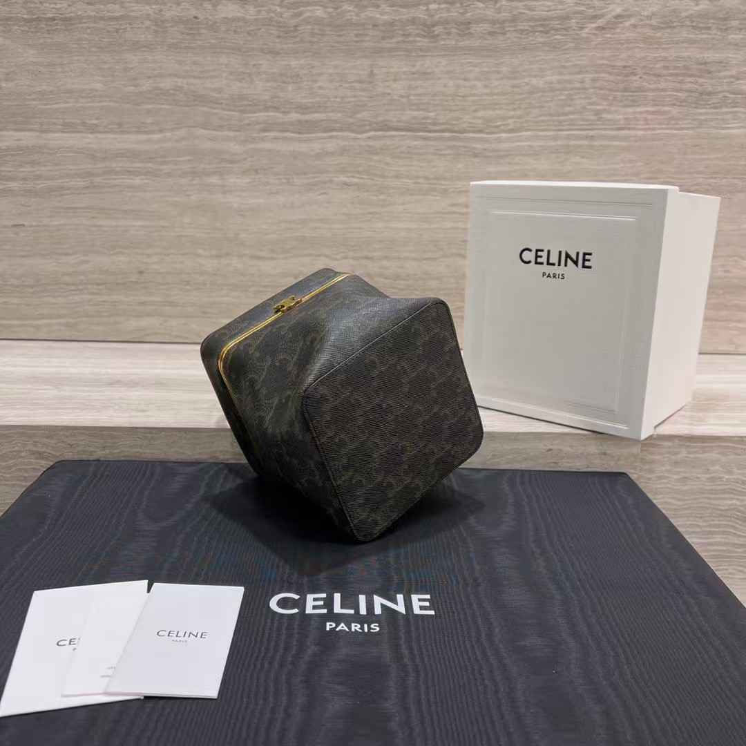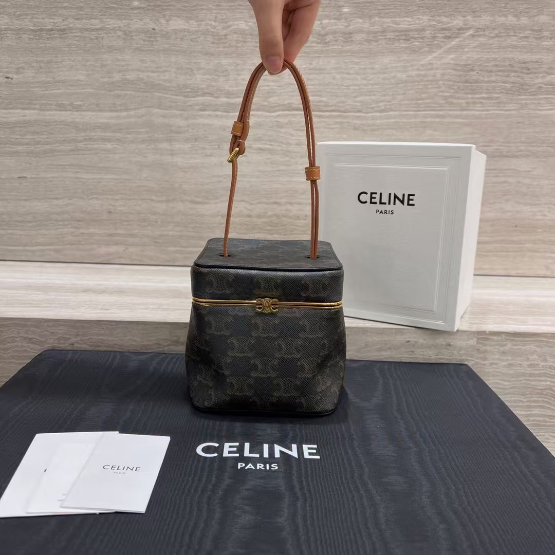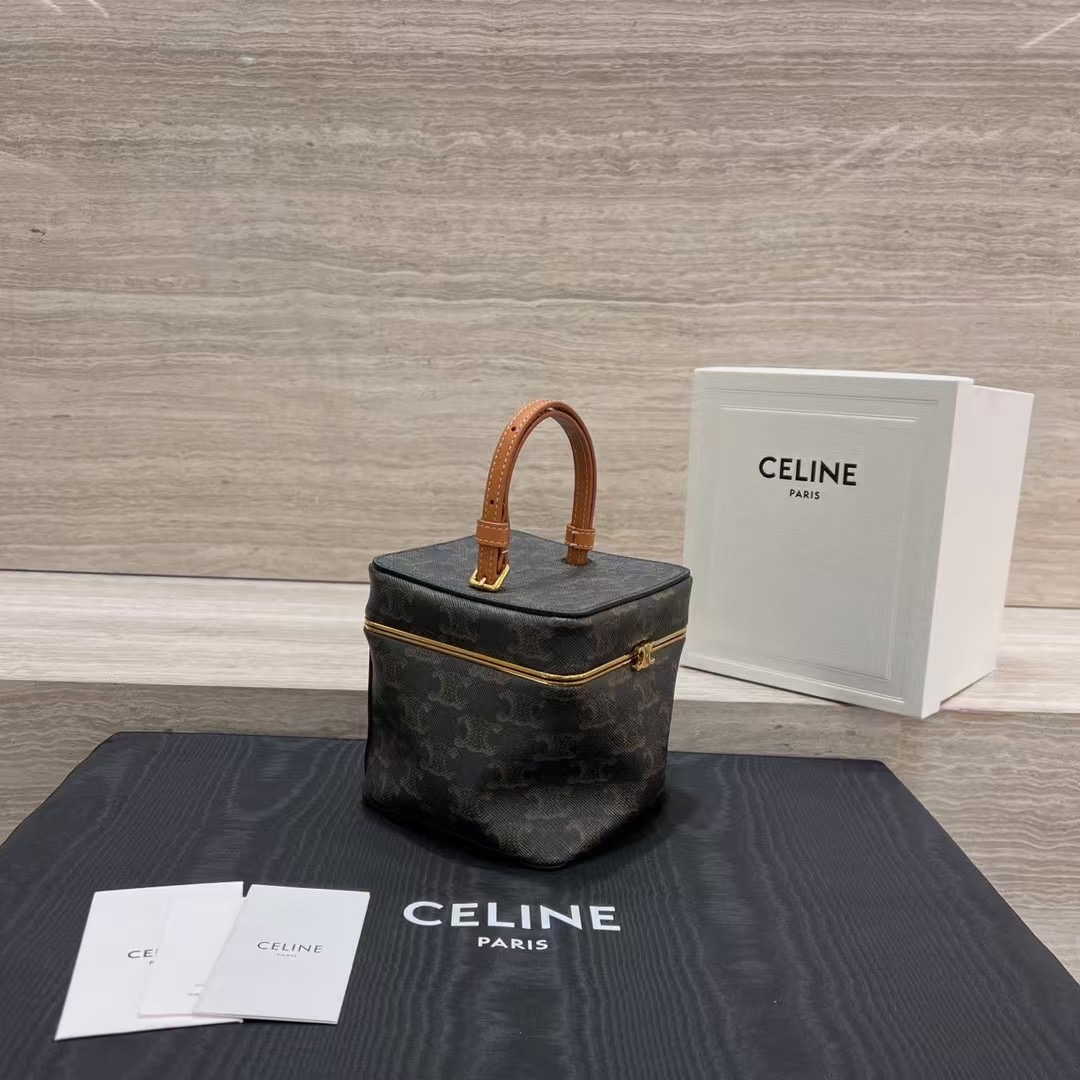 트리옹프 캔버스, 천연 송아지 가죽 트리밍 양가죽 안감 골드 마감 핸드 캐리, 엘보 캐리, 숄더 캐리 메인 수납공간 1개 이너 미러 1개 사이즈 : 가로12.5 x 세로12.5 x 높이12.5cm 최소 17cm, 최대 31cm 높이 조절 가능한 스트랩