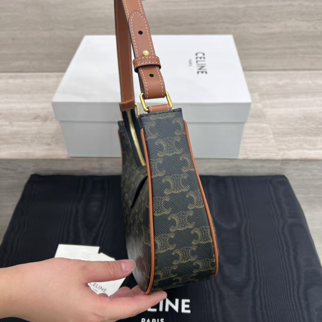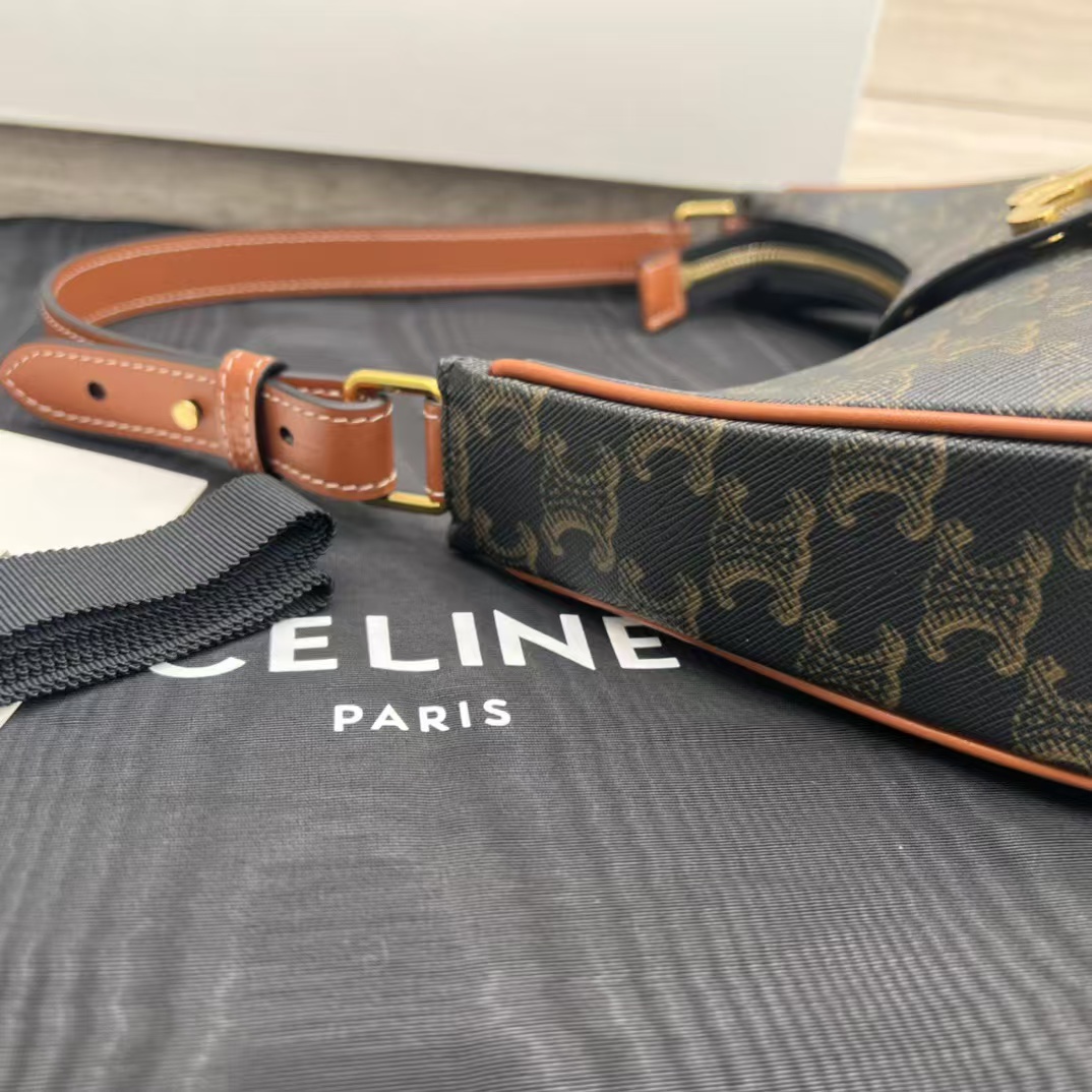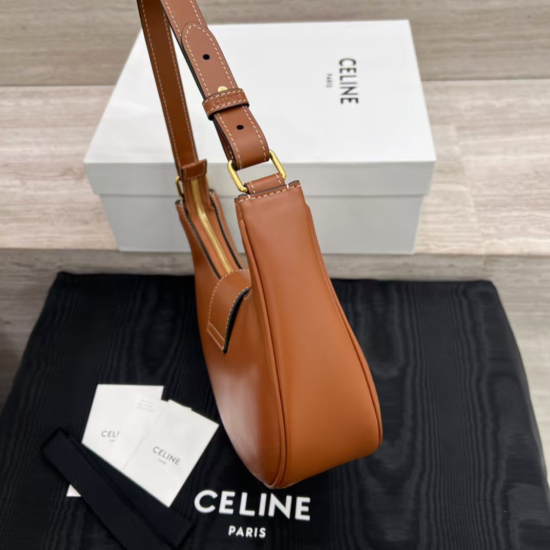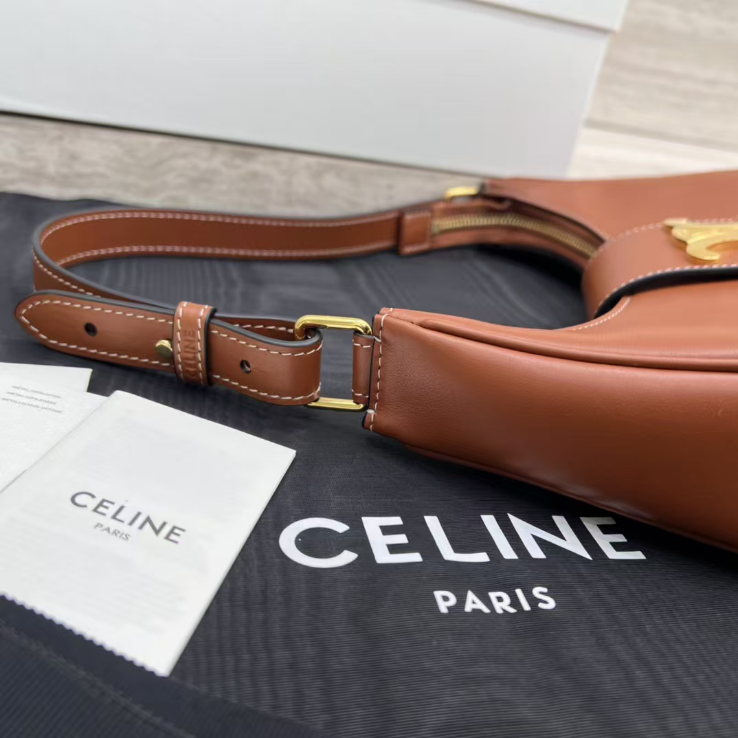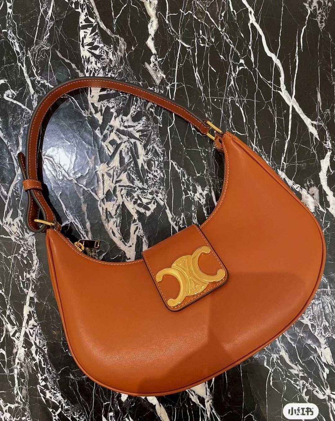 AVA 송아지 가죽으로 된 호보백 크기: 23×13.5x6cm 색상: 탄, 블랙, 트리옹프 카우하이드, 안감: 소가죽 + 원단 금장. 어깨와 손 들고 마그네틱 클로저와 지퍼로 더블 클로징 1개의 내부 포켓 스트랩 : 최소 길이 22cm, 최대 길이 23cm