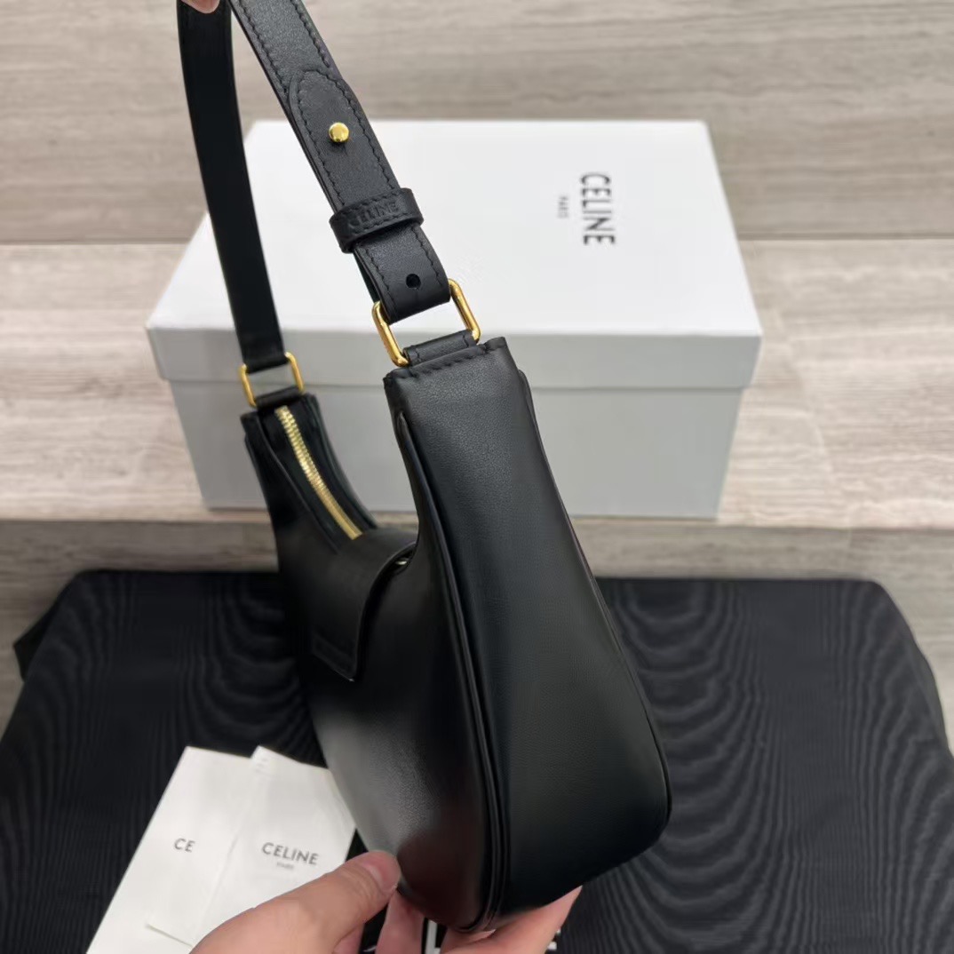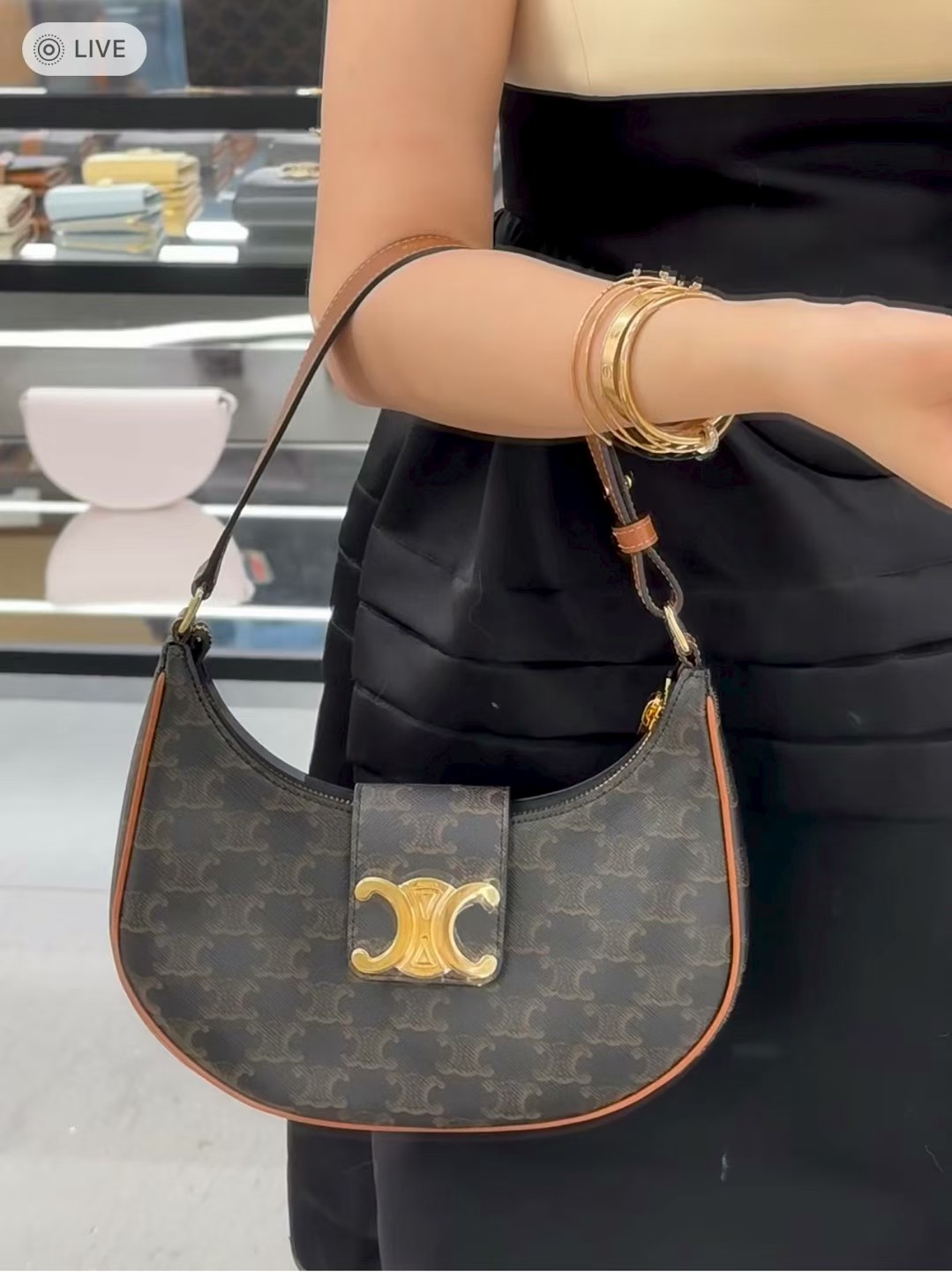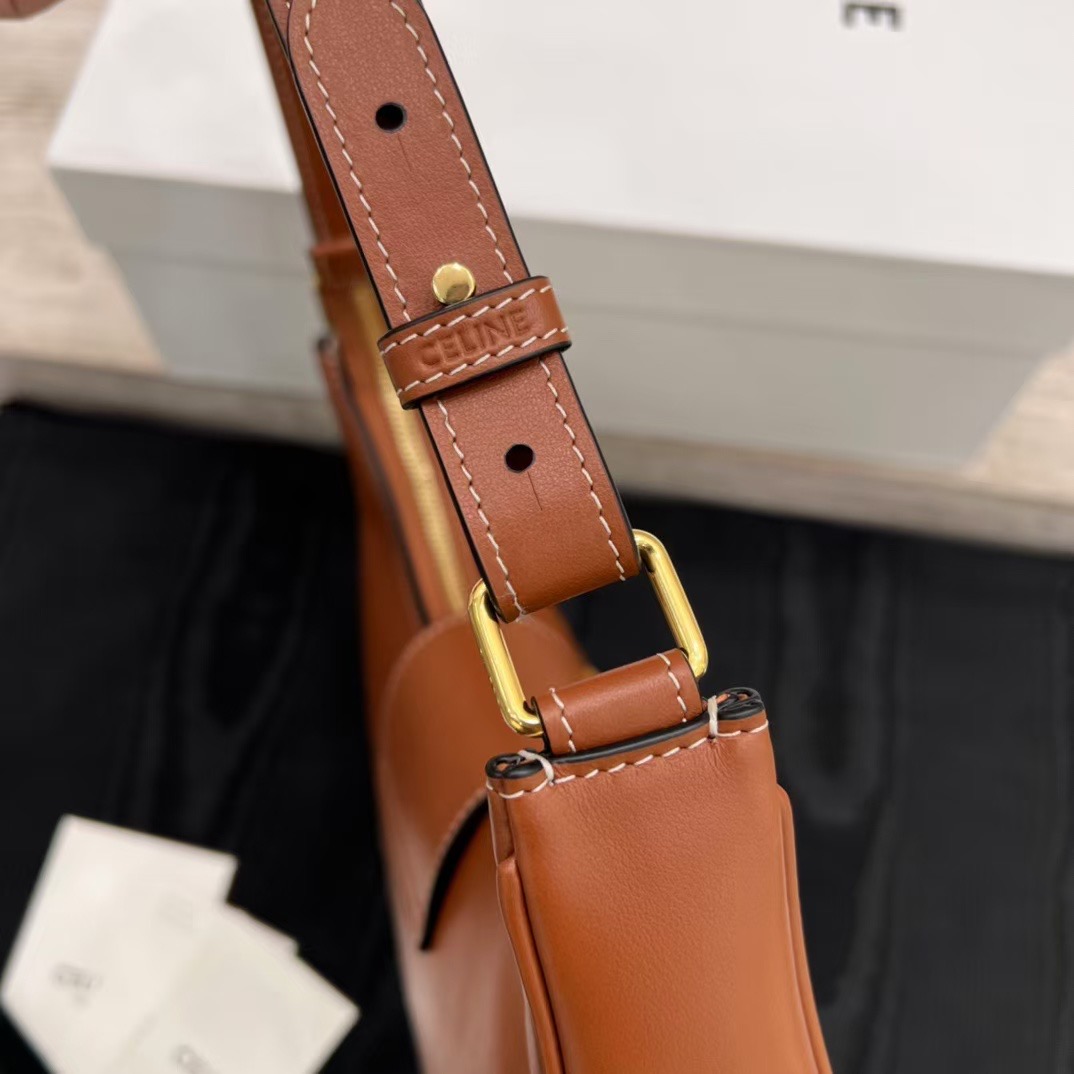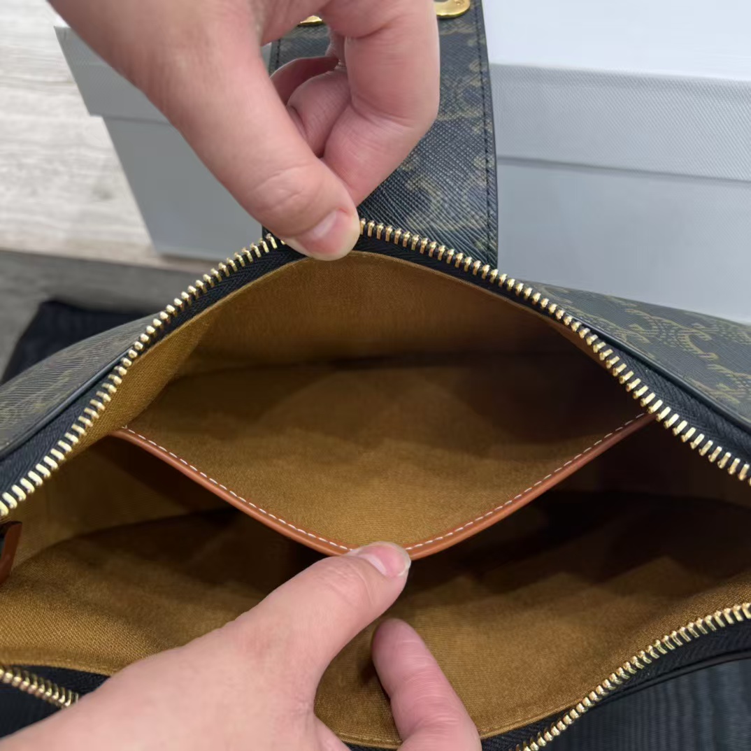 AVA 송아지 가죽으로 된 호보백 크기: 23×13.5x6cm 색상: 탄, 블랙, 트리옹프 카우하이드, 안감: 소가죽 + 원단 금장. 어깨와 손 들고 마그네틱 클로저와 지퍼로 더블 클로징 1개의 내부 포켓 스트랩 : 최소 길이 22cm, 최대 길이 23cm