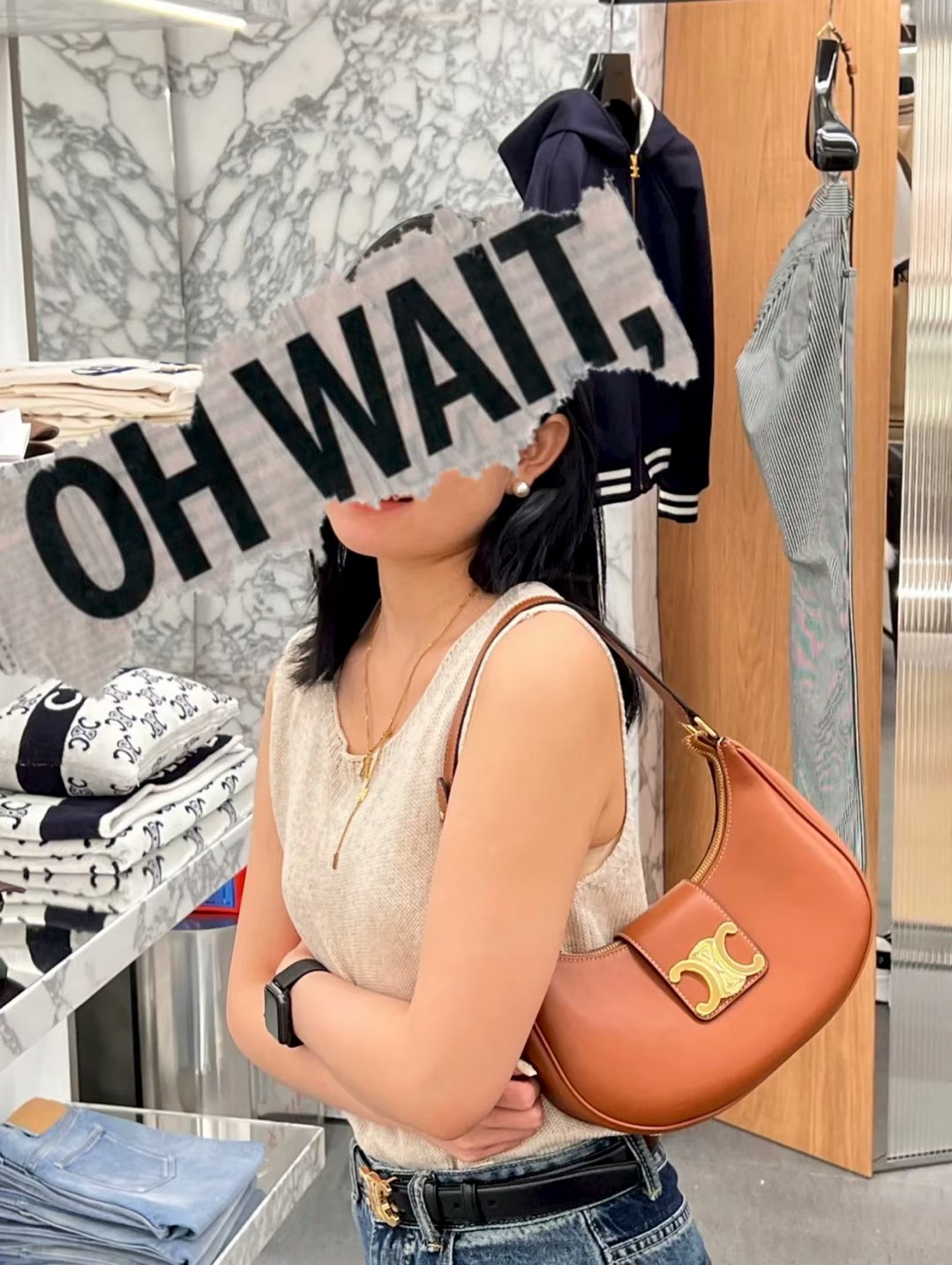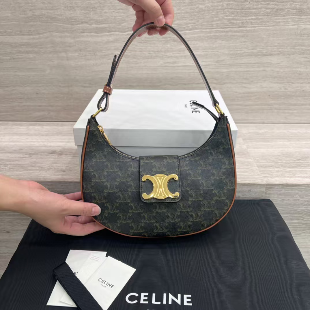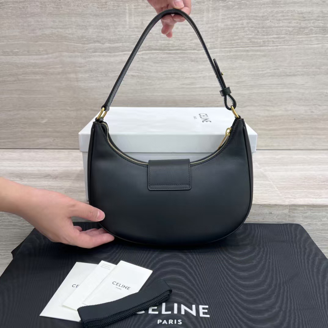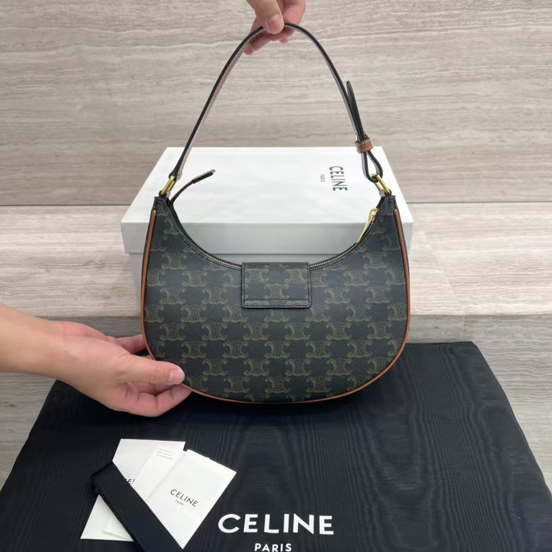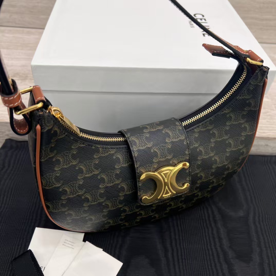 AVA 송아지 가죽으로 된 호보백 크기: 23×13.5x6cm 색상: 탄, 블랙, 트리옹프 카우하이드, 안감: 소가죽 + 원단 금장. 어깨와 손 들고 마그네틱 클로저와 지퍼로 더블 클로징 1개의 내부 포켓 스트랩 : 최소 길이 22cm, 최대 길이 23cm