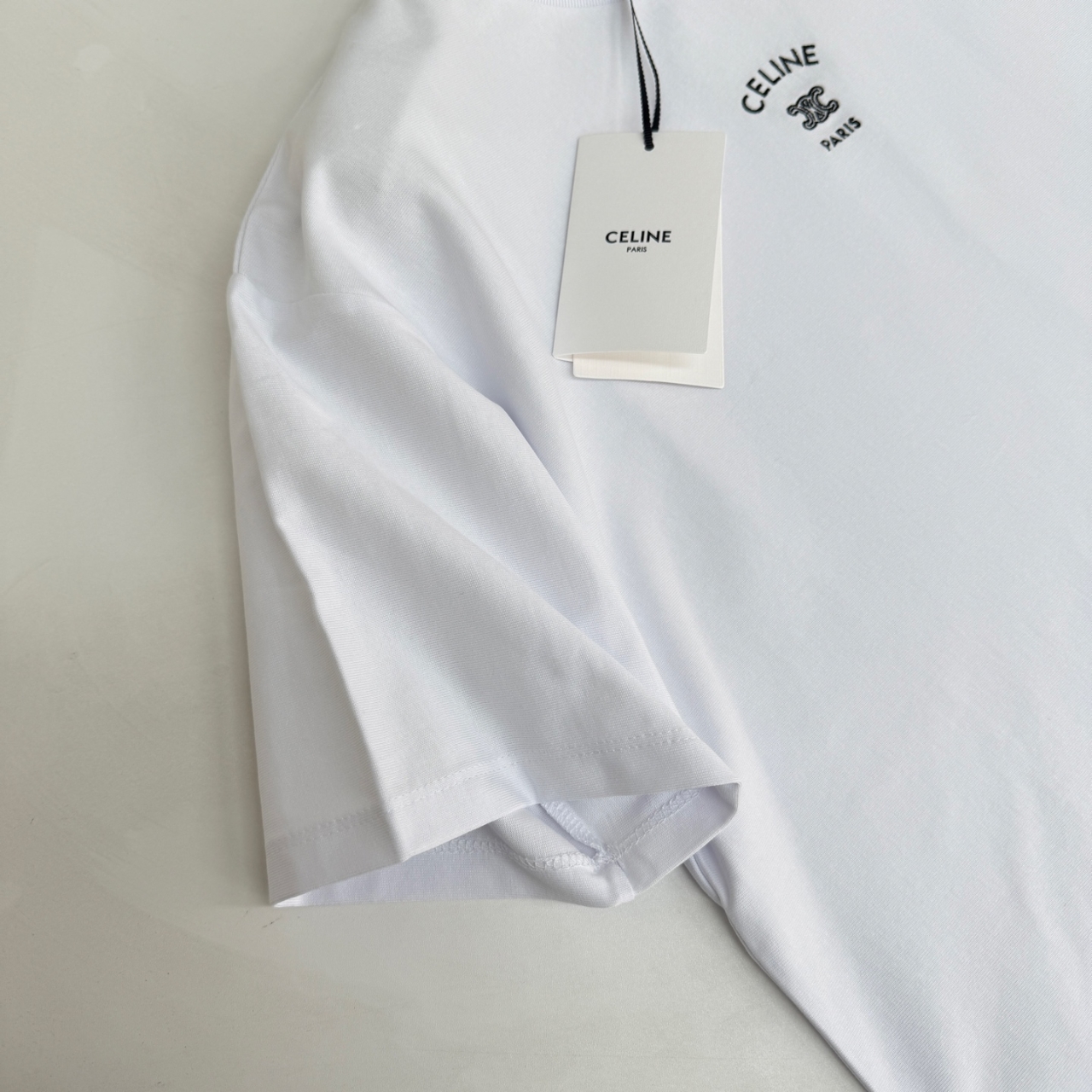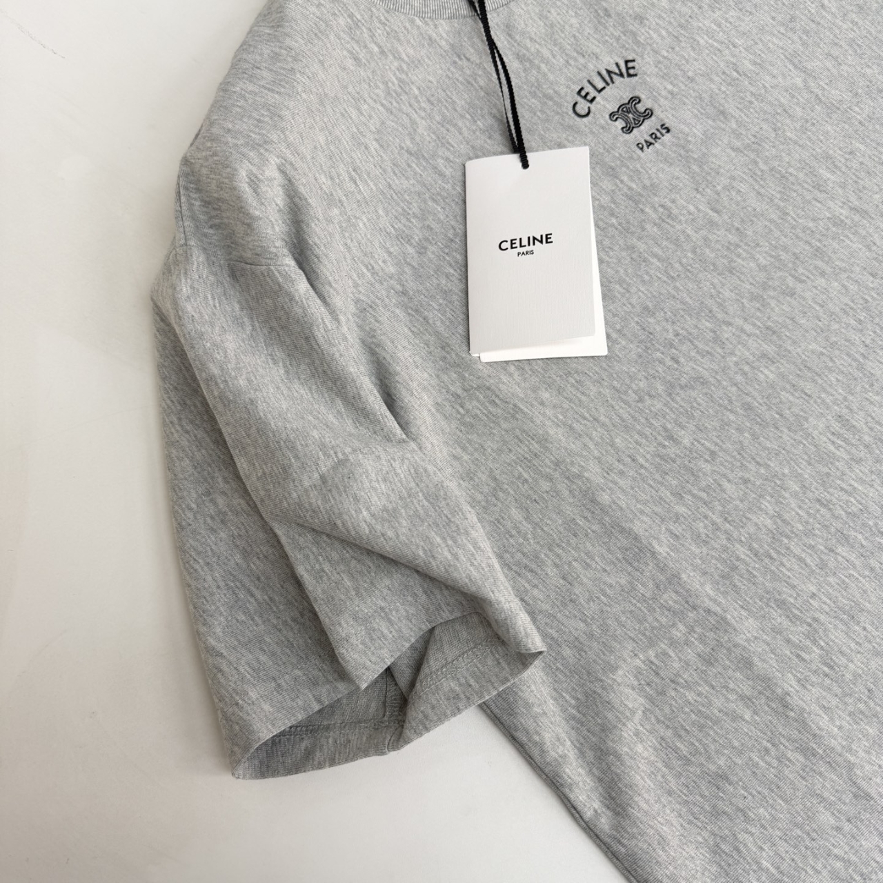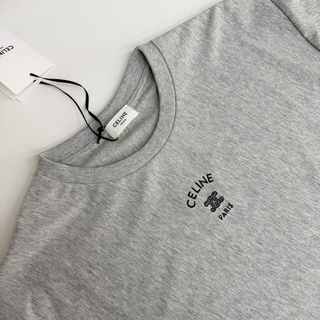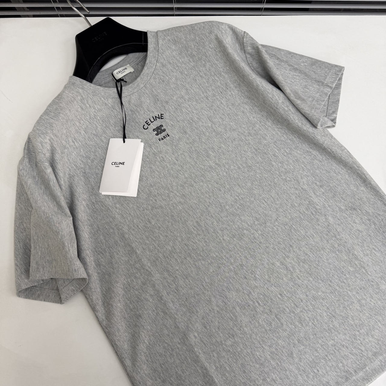 Celine자수 반팔 티셔츠. 부드러운 순면 소재로 제작되었으며, 가슴 부분의 로고 자수가 정교하고 독특한 인상을 줍니다. 소매와 밑단 마감은 3중 스티치로 테두리를 처리한 후, 3분의 2 지점에 이중 겉바느질을 더해 디테일을 살렸으며, 전체적으로 타지마 자수 기법을 적용했습니다. 색상: 화이트 ,그레이 SIZE: S M L XL 16090v+