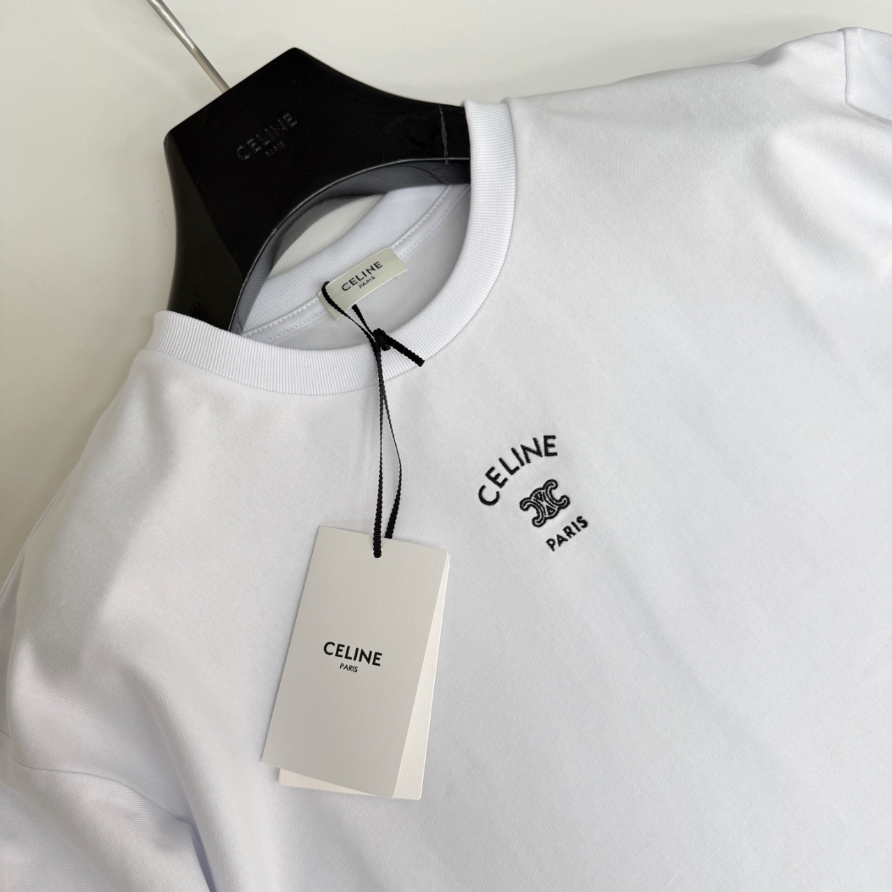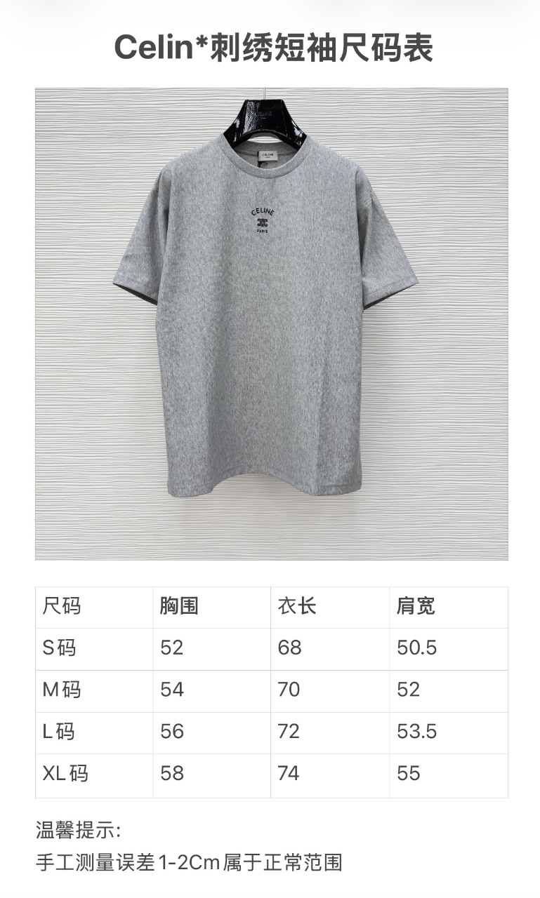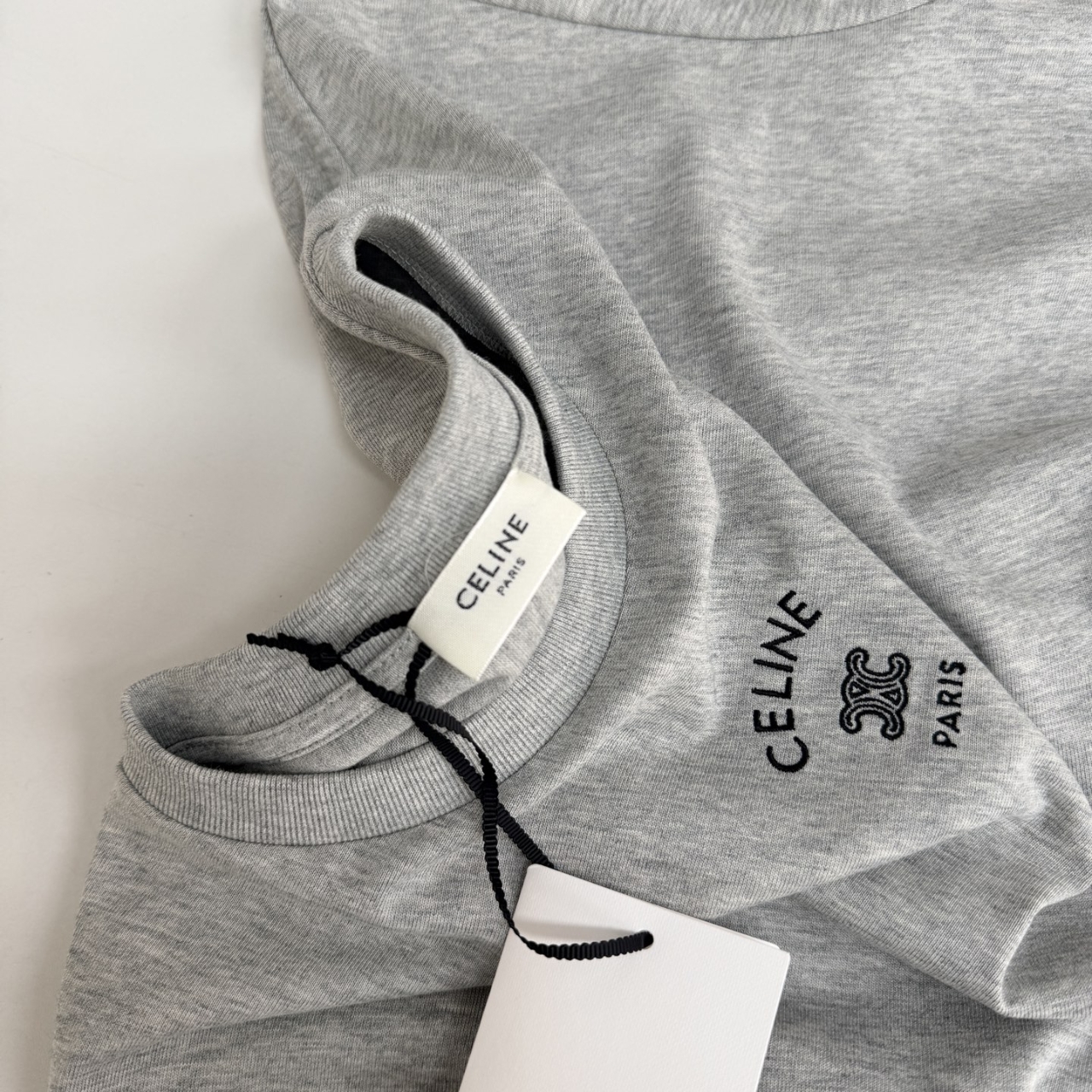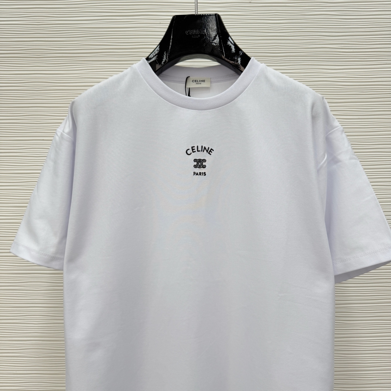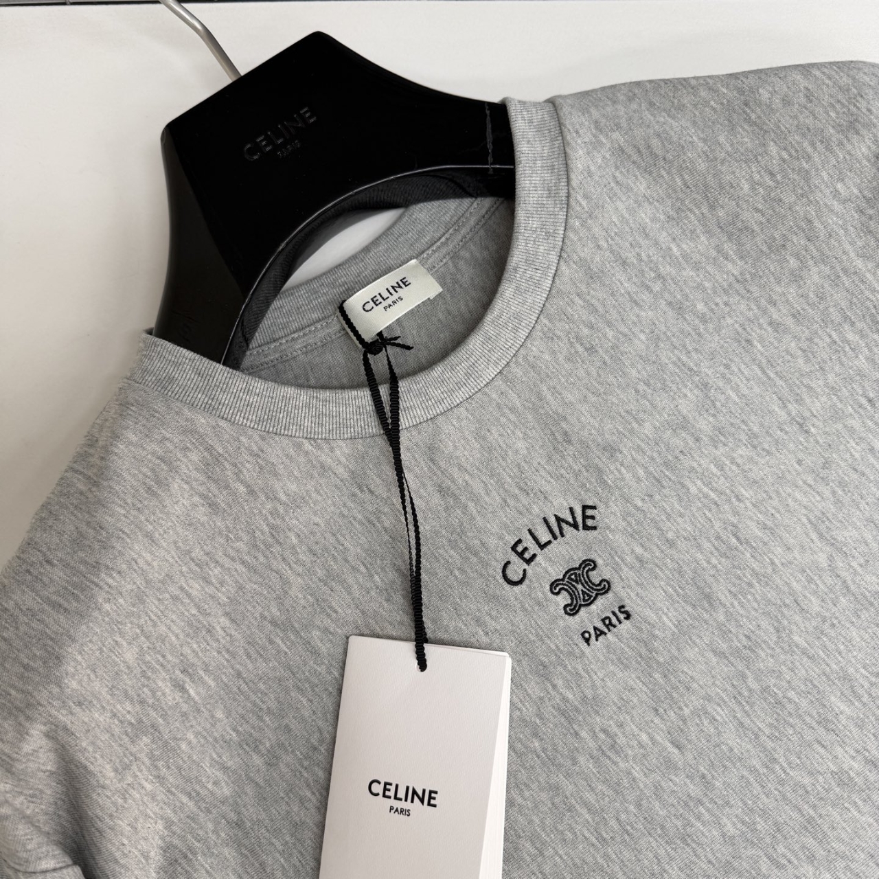 Celine자수 반팔 티셔츠. 부드러운 순면 소재로 제작되었으며, 가슴 부분의 로고 자수가 정교하고 독특한 인상을 줍니다. 소매와 밑단 마감은 3중 스티치로 테두리를 처리한 후, 3분의 2 지점에 이중 겉바느질을 더해 디테일을 살렸으며, 전체적으로 타지마 자수 기법을 적용했습니다. 색상: 화이트 ,그레이 SIZE: S M L XL 16090v+