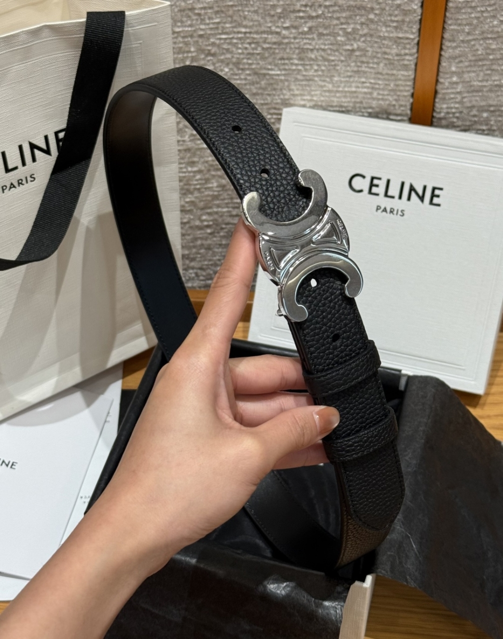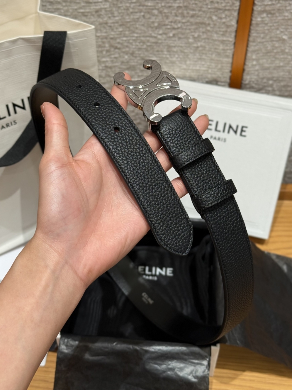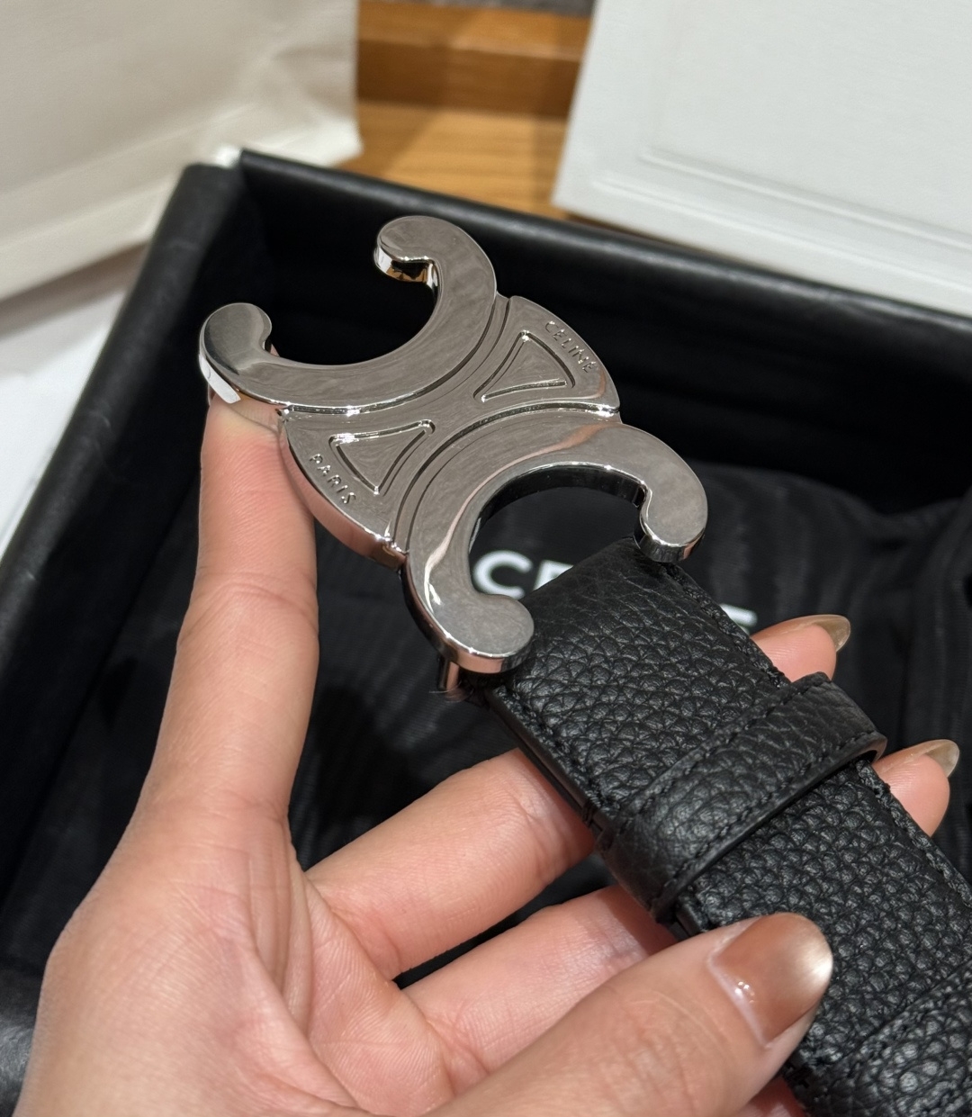 은색 금속 버클은 파리의 트라이엄프 아치에서 영감을 받아 프랑스식 미니멀리즘과 독보적인 개성을 자랑합니다.