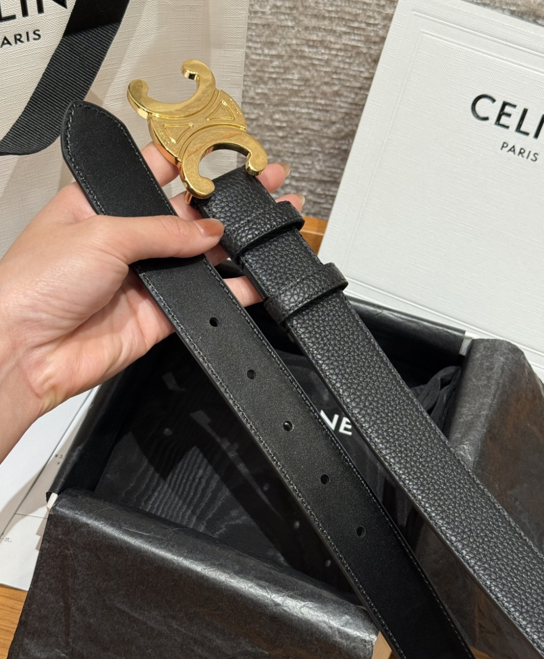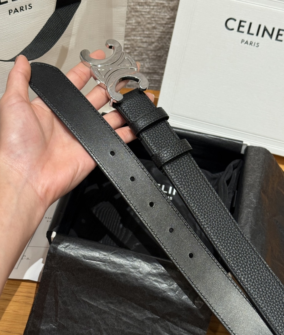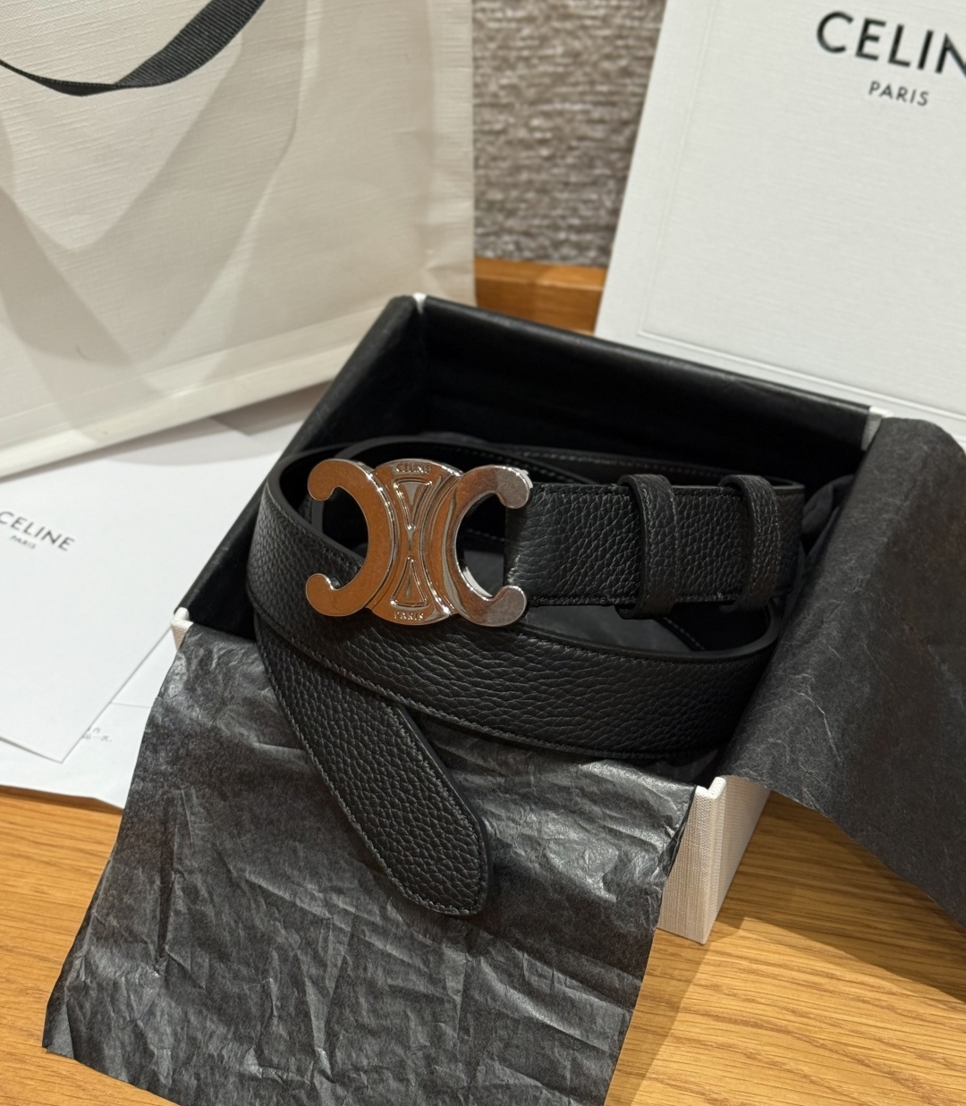 은색 금속 버클은 파리의 트라이엄프 아치에서 영감을 받아 프랑스식 미니멀리즘과 독보적인 개성을 자랑합니다.