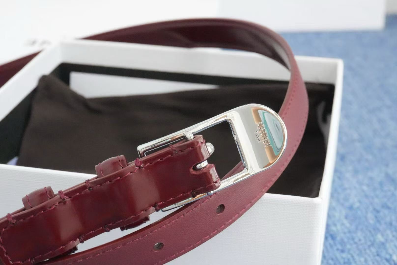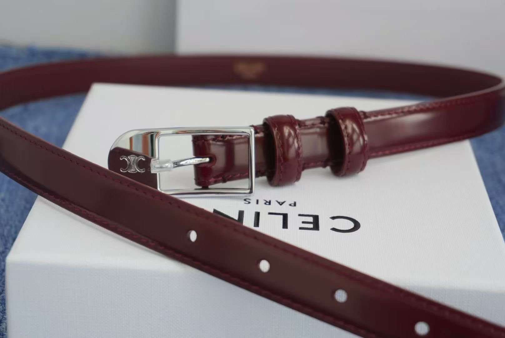 🔴 【브랜드】셀린 여성용 벨트 번호 55090 1.5cm 🔴 【설명】송아지 가죽으로 만든 양면 가죽 조절 불가 벨트, 팔라듐 금과 은강철 금속 버클이 달려 있어 🔴 소가죽 소재: 스테인리스 스틸 🔴 이탈리아 메이드 🔴 벨트는 이탈리아 사이즈이니 구매 전에 사이즈 가이드를 참고해 주세요 색상 사진참조 사이즈 표 확인해주세요