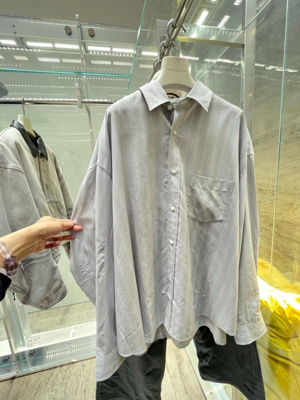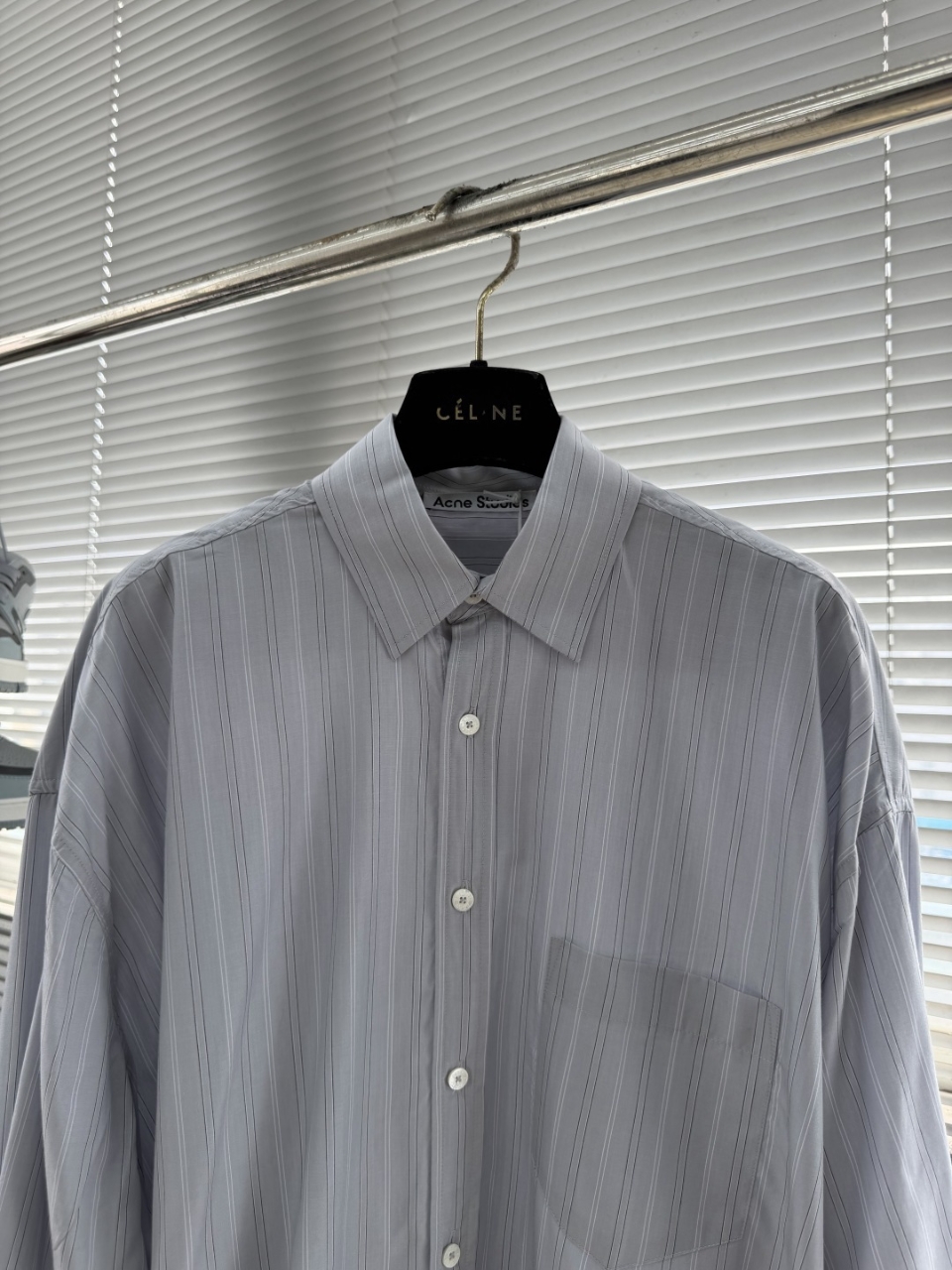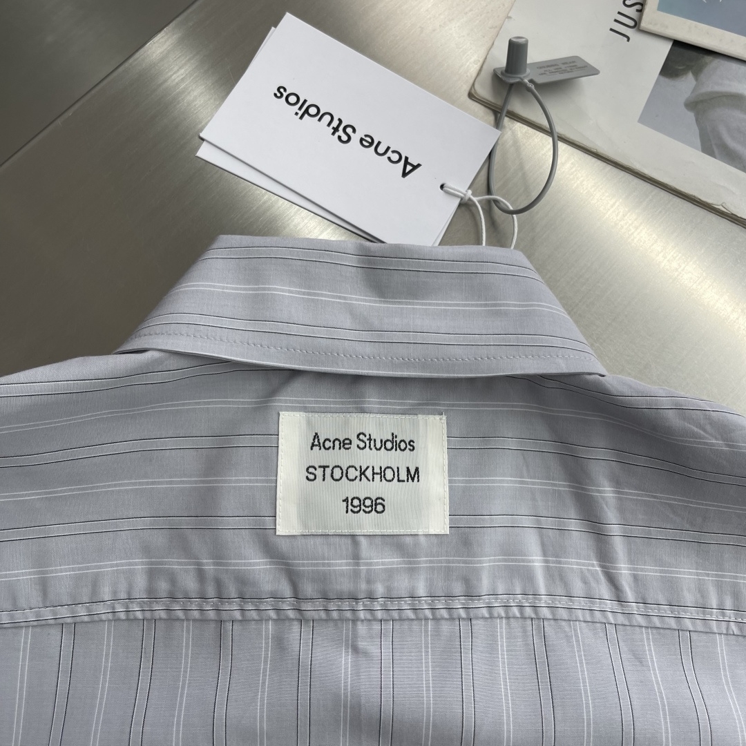 26SS 스트라이프 라펠 버튼 장식이 있는 긴소매 셔츠 Acne 전용 고사수 리넨 혼방 스트라이프 직물 수제 라벨 전용 재단대 1:1 맞춤 제작 부자재 및 액세서리 사이즈: 46 48 50 52 총 장 75.5 77 78.5 80 가슴둘레 156 160 164 168 어깨너비 60.5 62 63.5 65 2301041020