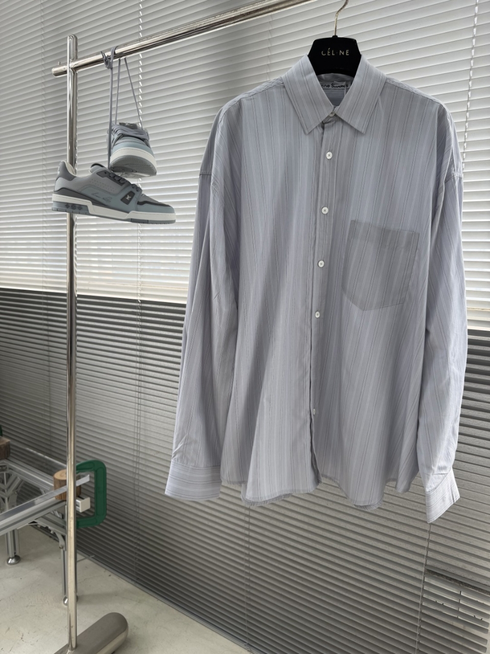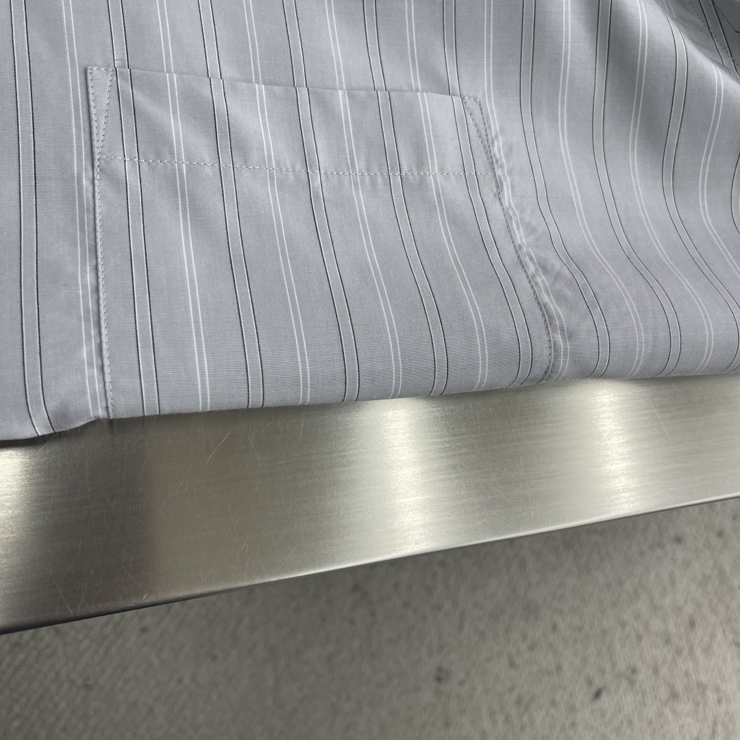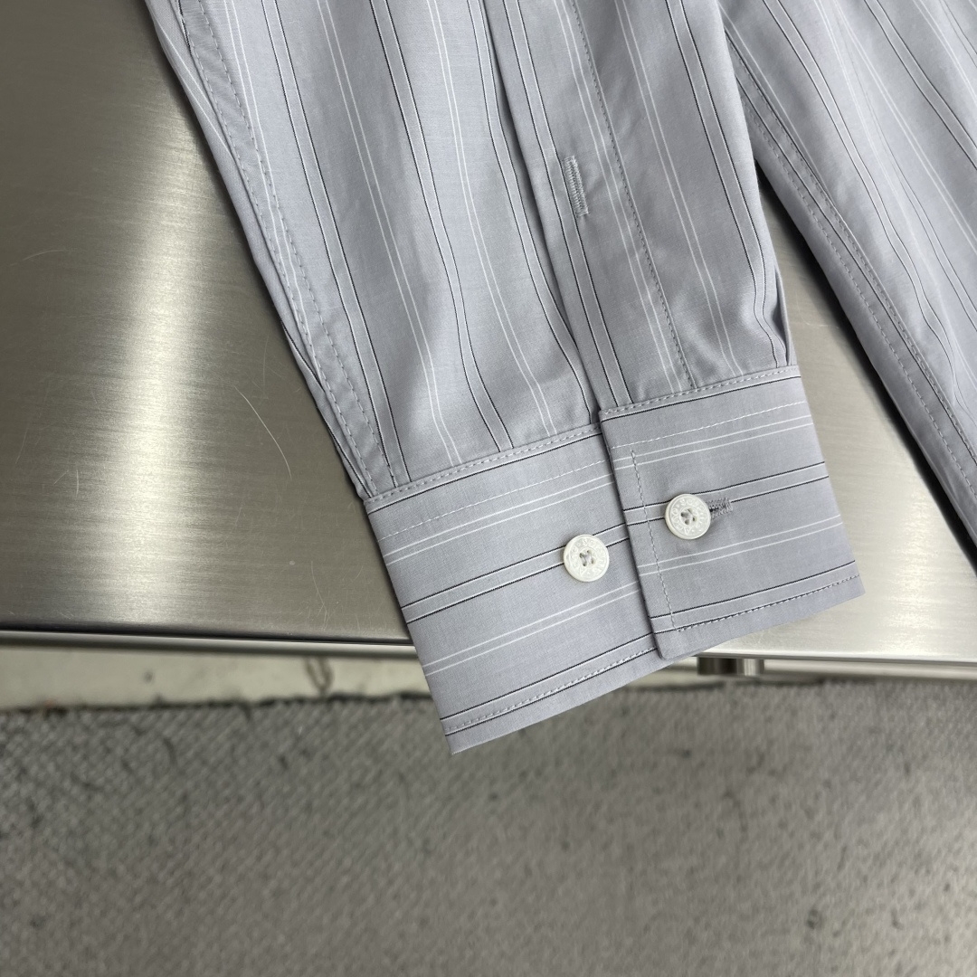 26SS 스트라이프 라펠 버튼 장식이 있는 긴소매 셔츠