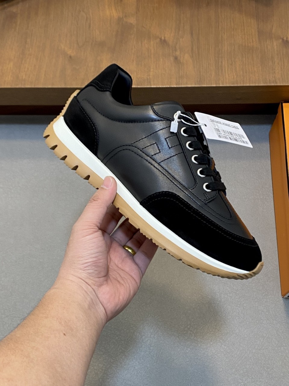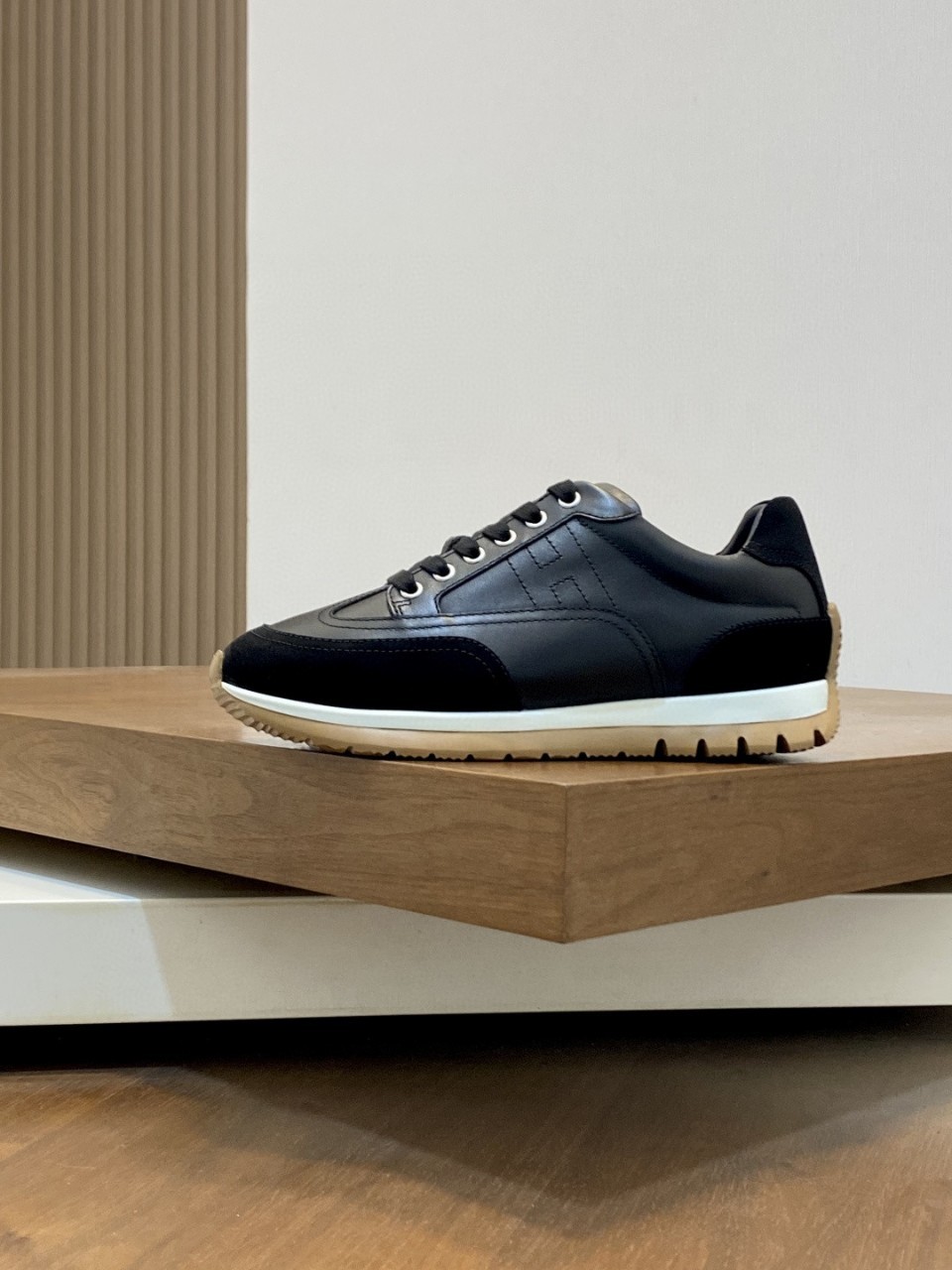 송아지 가죽을 조합하여 만들고 가벼운 밑창 장식의 컬러 패턴으로 스타일리쉬한 룩을 완성합니다.