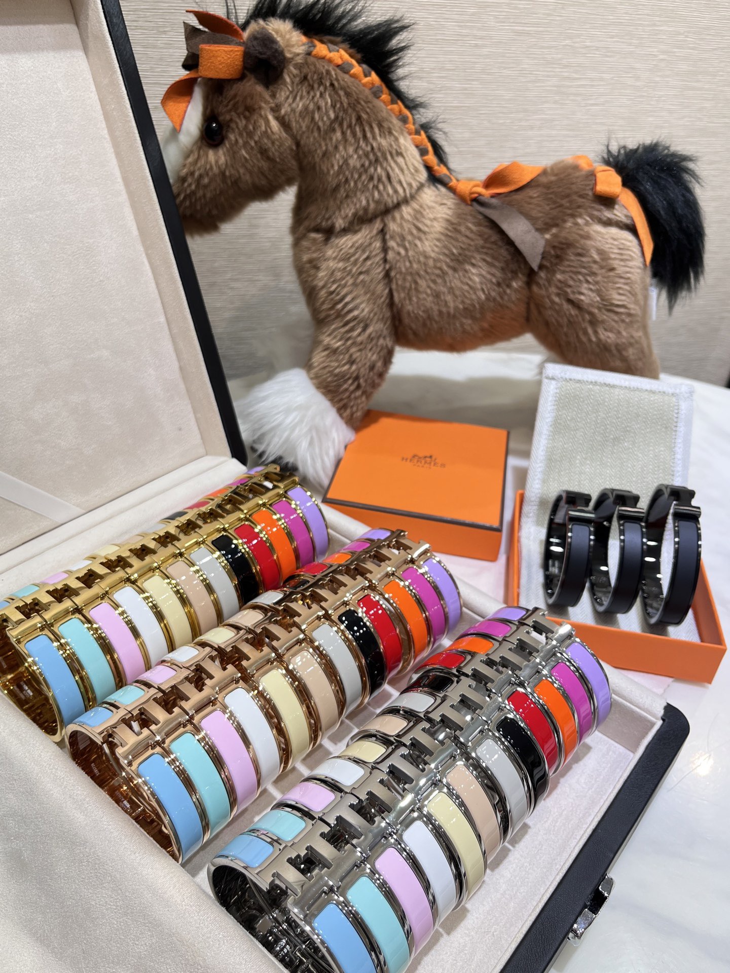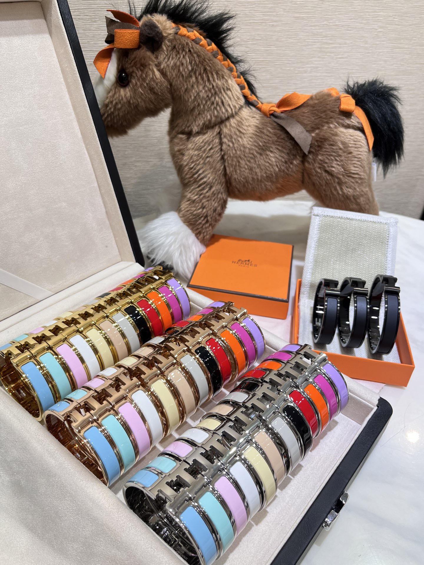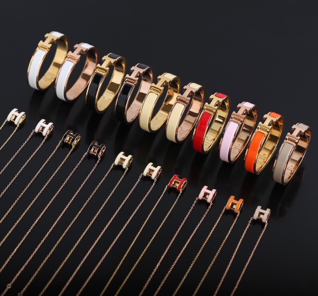 하트렌디와 럭셔리가 공존하는 클릭아슈. PM 17cm GM 19cm 로 진행합니다. 여자분들은 대부분 pm 입니다. 색상은 옐골, 핑골, 화골 3가지이며 코팅은 벗겨짐이 거의 없습니다. 정품동일 소재로 팔라듐과 에나멜입니다. 유광 뱅글타입이라 생활 스크레치에 민감합니다만 정품이 스크래치 나는 것 보다 마음이 편하실 겁니다. 😅😅😅 PM 178,000 GM 198,000 각인유, 풀박스배송. 같은 라인으로 목걸이 귀걸이도 있어요