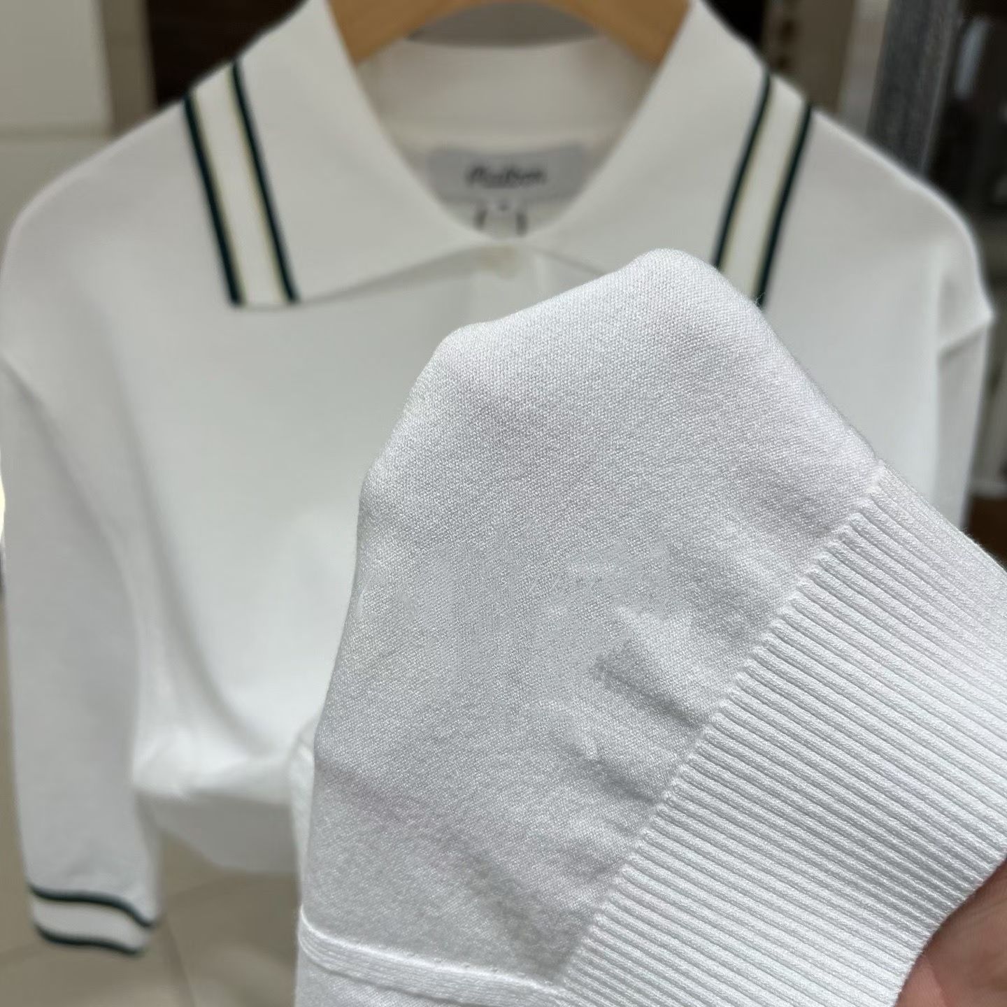 / 여성 컬러 팁 카라 하프슬리브 니트 OFF WHITE (WOMAN)