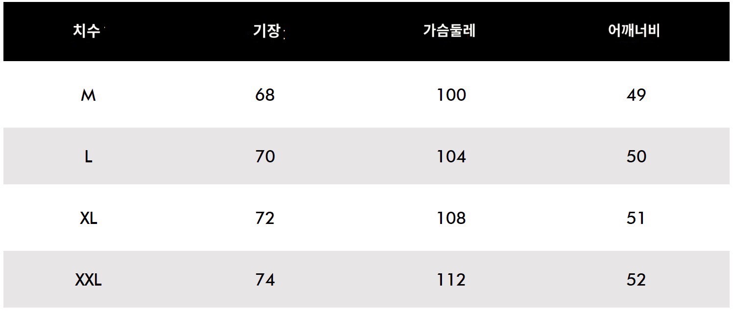 사이즈 : M, L, XL, XXL 하단 사이즈표 참조