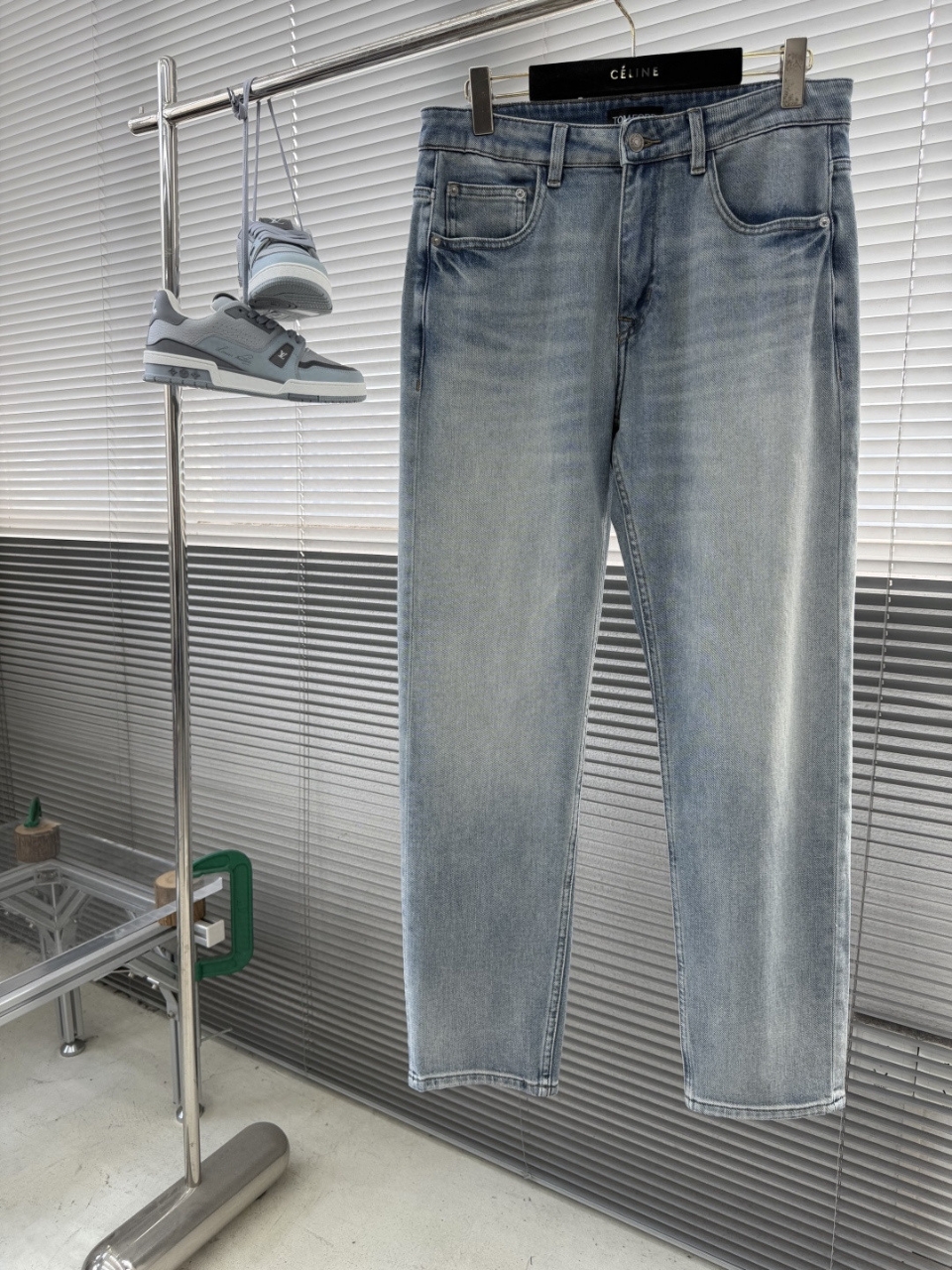 클래식한 라이트 블루 워싱 컬러로 봄과 여름의 다양한 룩에 적합하며 캐주얼한 상의와 비즈니스 셔츠에 부담 없이 매치할 수 있습니다.