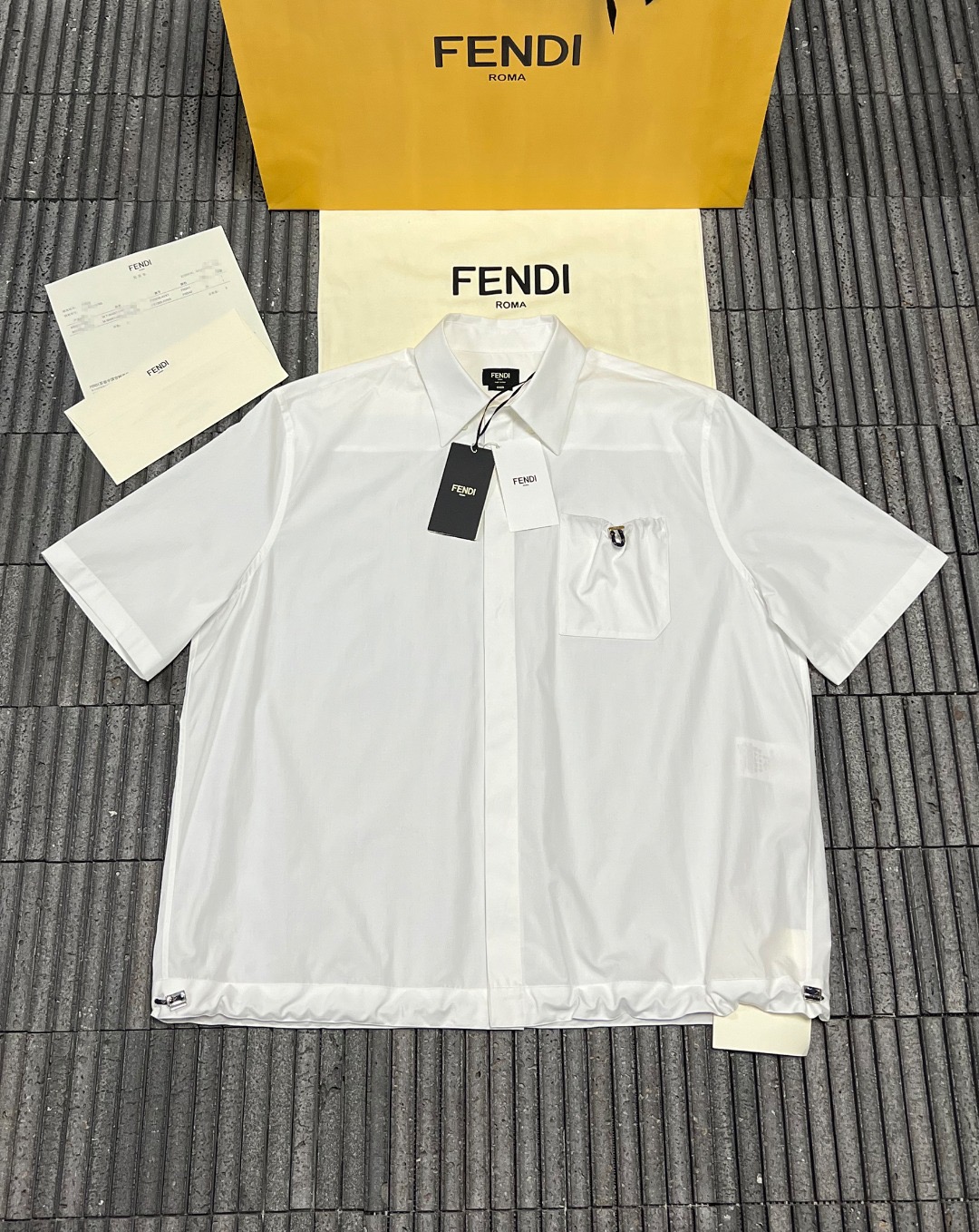 FENDI 26SS 포켓 드로스트링 실크 셔츠 ● 정품 8700 구매 개발 ● 40수 100% 전면 면 셔츠 원단 110g ●수입 자수 ●수작업 봉제 ● 맞춤형 1:1 하드웨어 ● 맞춤형 1:1 끈 ● 맞춤형 1:1 버튼 ● 맞춤형 1:1 상표 ●루즈핏 ● 사이즈: S M L XL