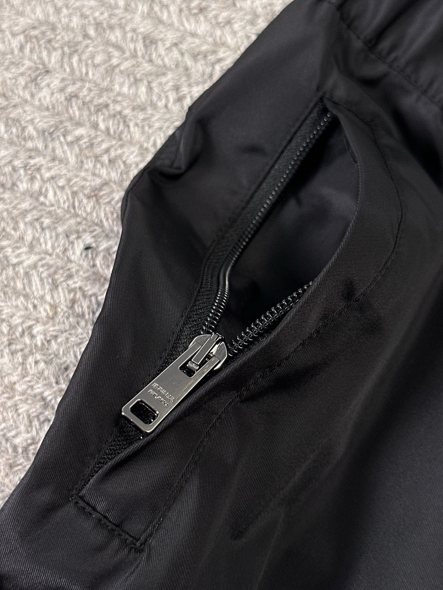 프라다 신상 심플 치노팬츠 재생 나일론을 소재로 한 미니멀한 카고 팬츠로 양쪽 지퍼 멀티 포켓 디자인이 멋스러움을 더했습니다. 커스텀 오리지널 원단. 블랙 사이즈: 48-56(29-38)