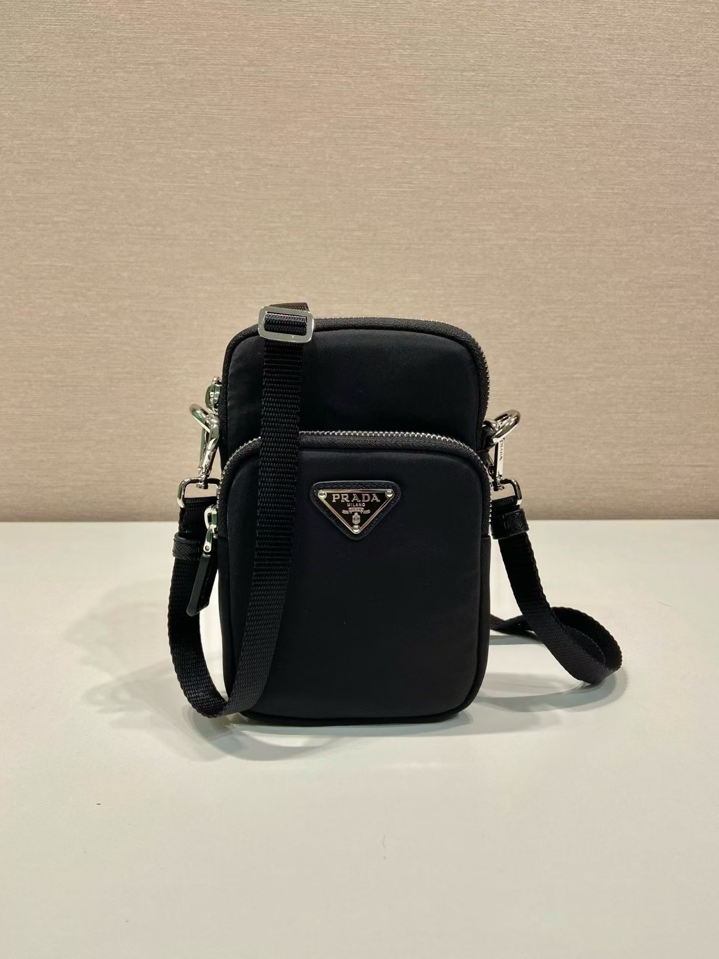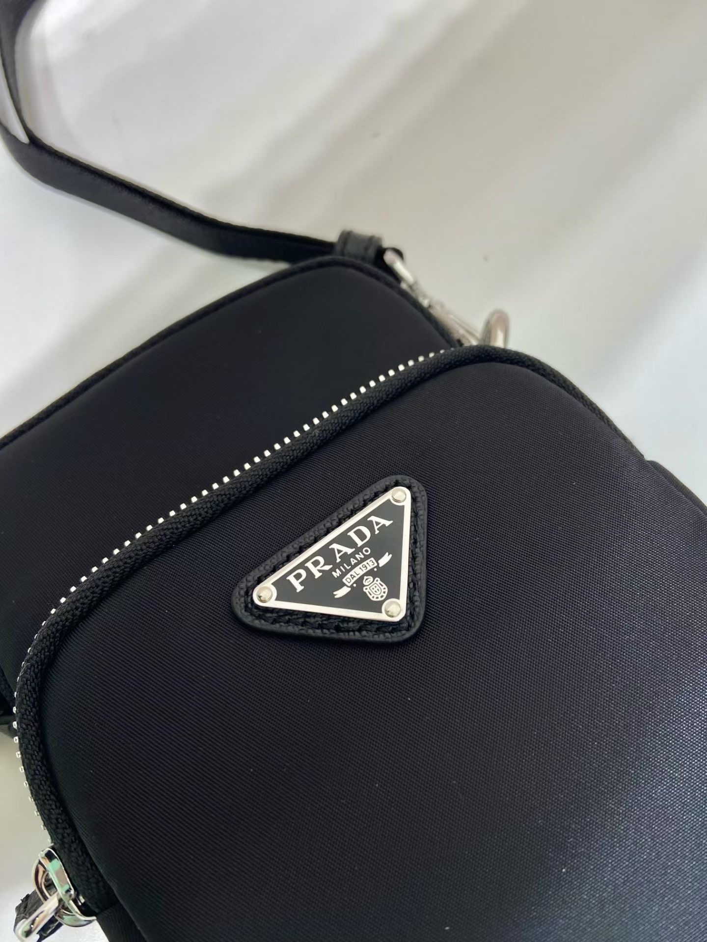 프라다 리나일론 휴대폰 가방 2ZT024 수입된 방수 나일론 원단, 최고급 하드웨어, 그리고 분리 및 조절 가능한 나일론 긴 어깨끈 두 개의 지퍼 수납 공간-아이폰 17 프로맥스가능초경량 제품으로 무게감이 거의 없습니다. 크기: 17 x 11 x 4.5 090450