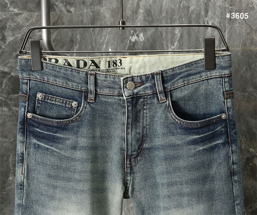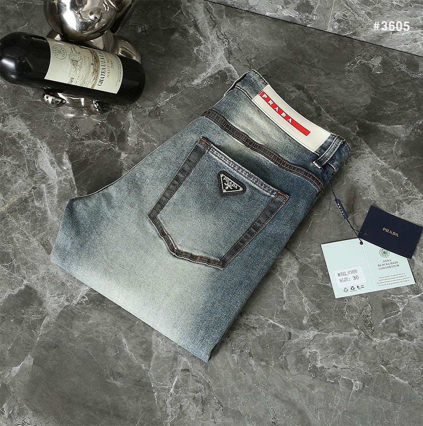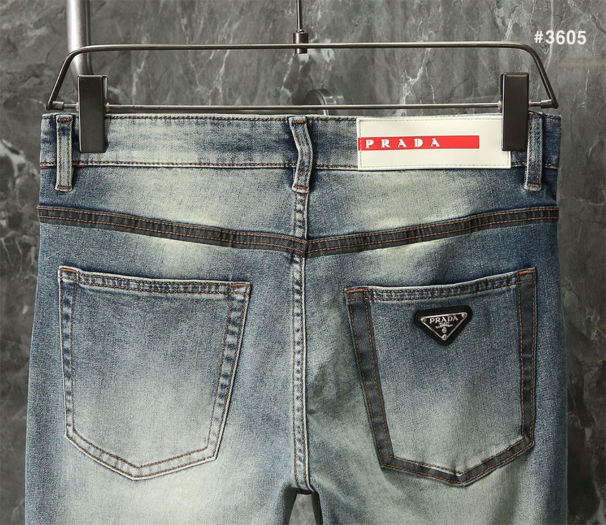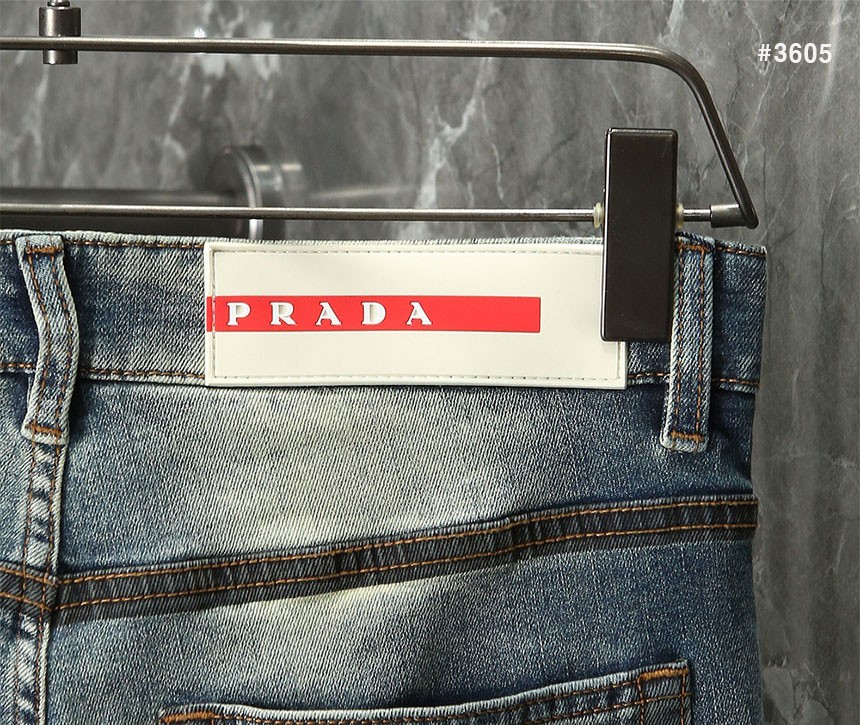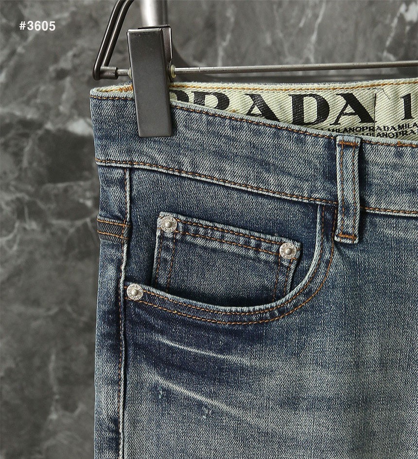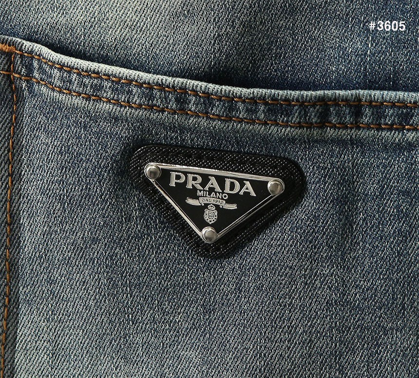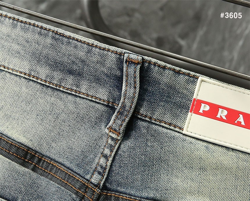 프*다 밀라노 삼각로고 패치 워싱 데님 팬츠 🍀