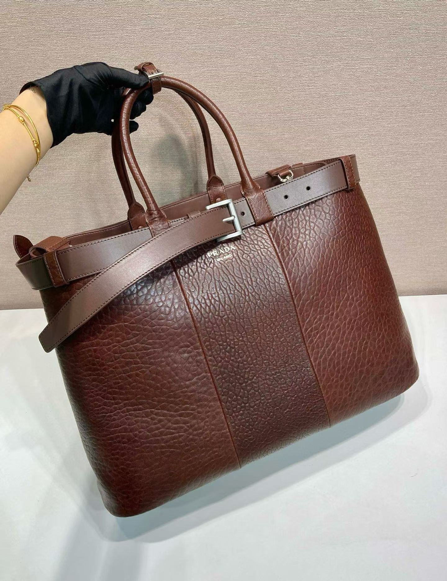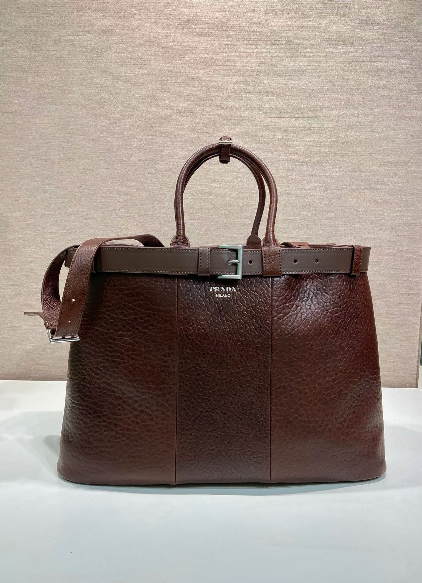 버클이 달린 장식 벨트 가죽 핸들 버클이 달린 탈부착이 가능한 맞춤 조절형 가죽 숄더 스트랩 최대 길이 110cm – 최소 길이 100cm – 최대 드롭 길이 53cm – 최소 드롭 길이 48cm 전면 핫스탬프 로고 패치 포켓이 있는 내부 나파 가죽 안감 7가지 스타일로 주문가능 크기: 48 x 34 x 18 0901500