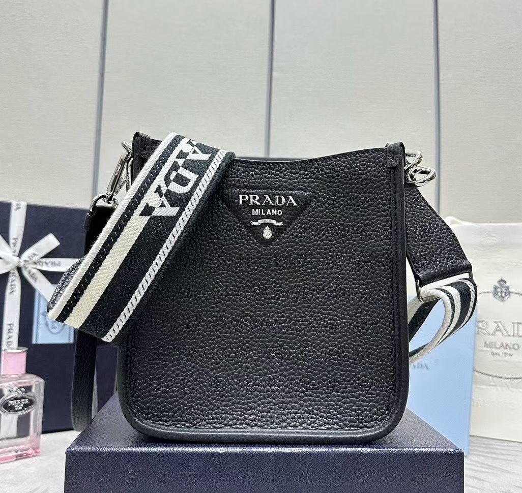 강조하며, 길이 조절이 가능한 프라다 자카드
