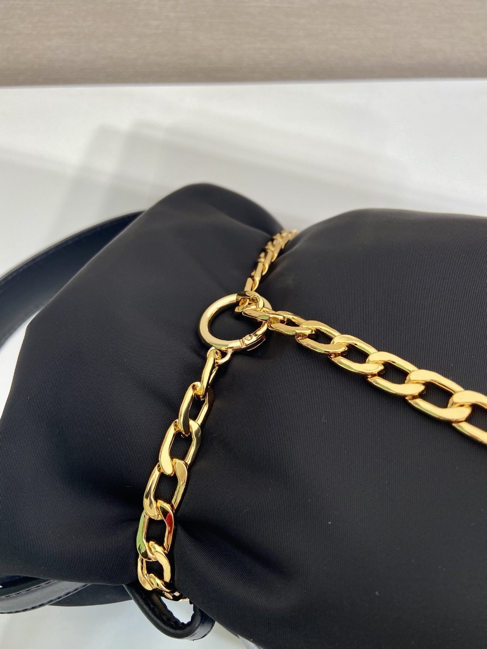 이 행운의 작은 버킷백은 수입 나일론 원단과 수입 송아지 가죽을 사용