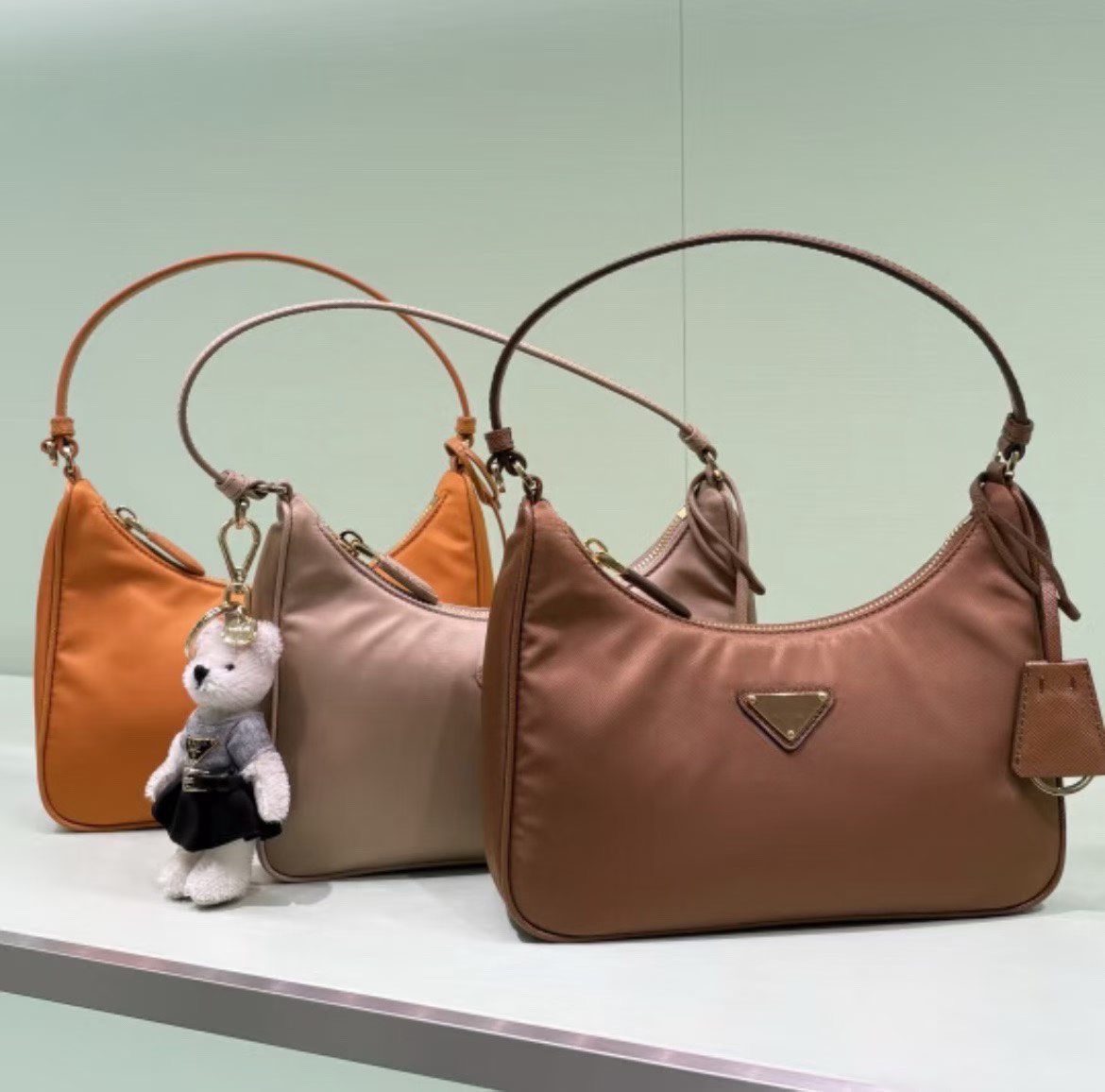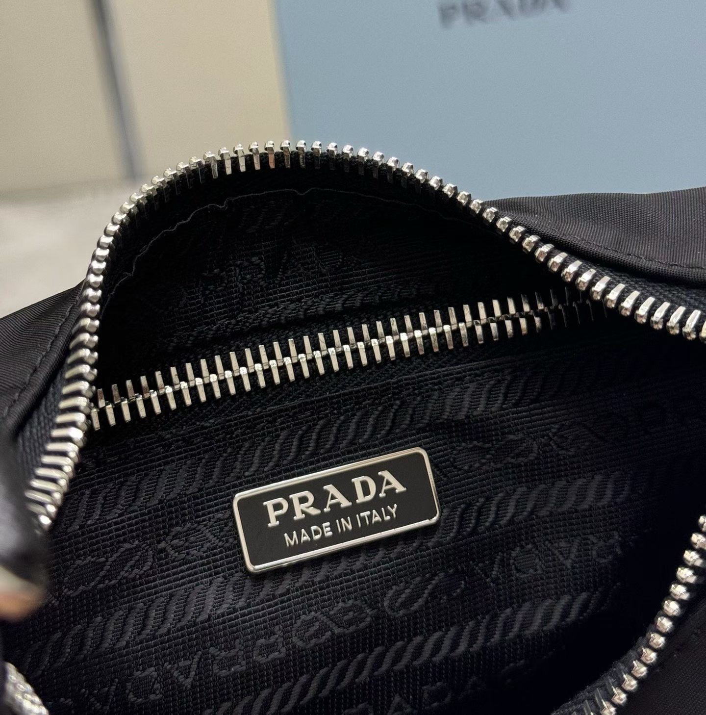 제품 코드: 1N204 지퍼 클로저 에나멜 메탈 트라이앵글 로고 가죽 핸들로고 프린트 리나일론 안감 18cm x 22cm x 6.5cm 최고급 낙하산방수나일론원단 사용. 휘뚜루마루뚜템