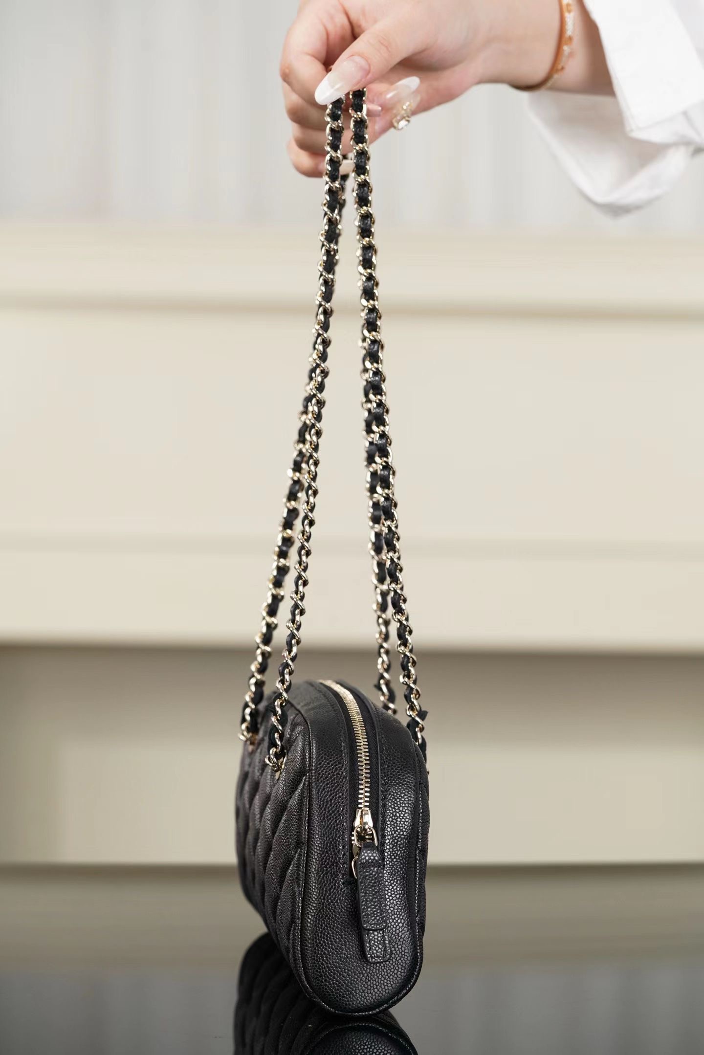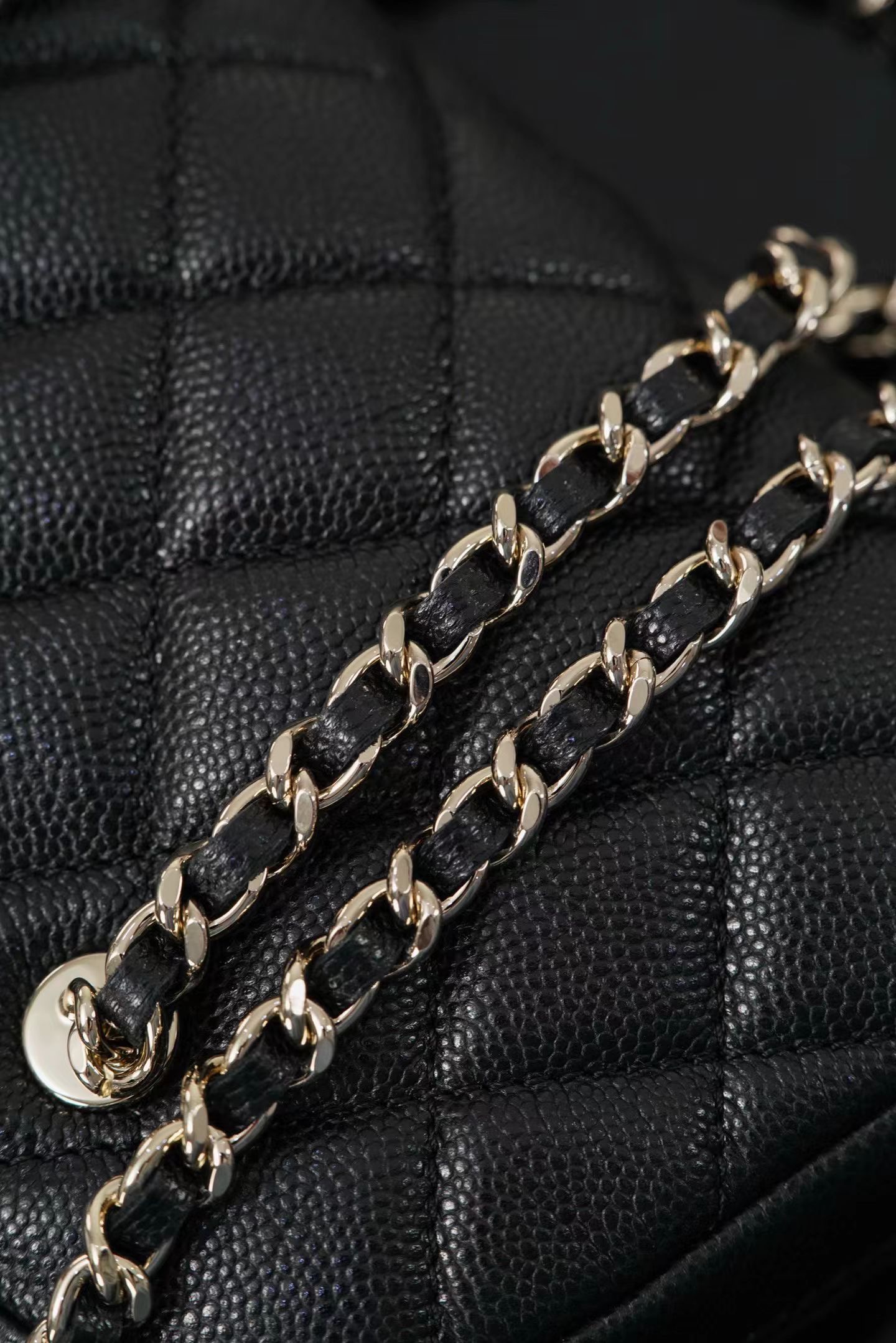 하드웨어 색상 하나이며 수입된 정품hass 캐비어 가죽과 부자재로 싱크로율이 아주 뛰어납니다. 크기: 11.7×19.5×5.5cm