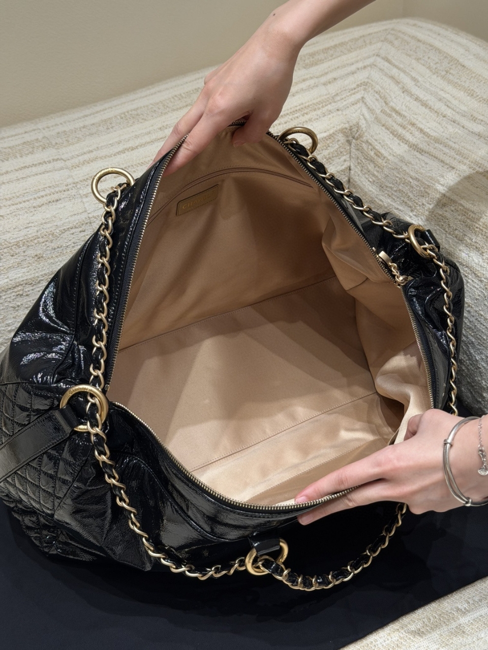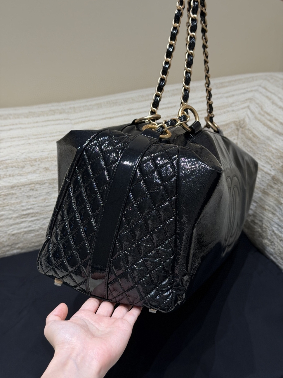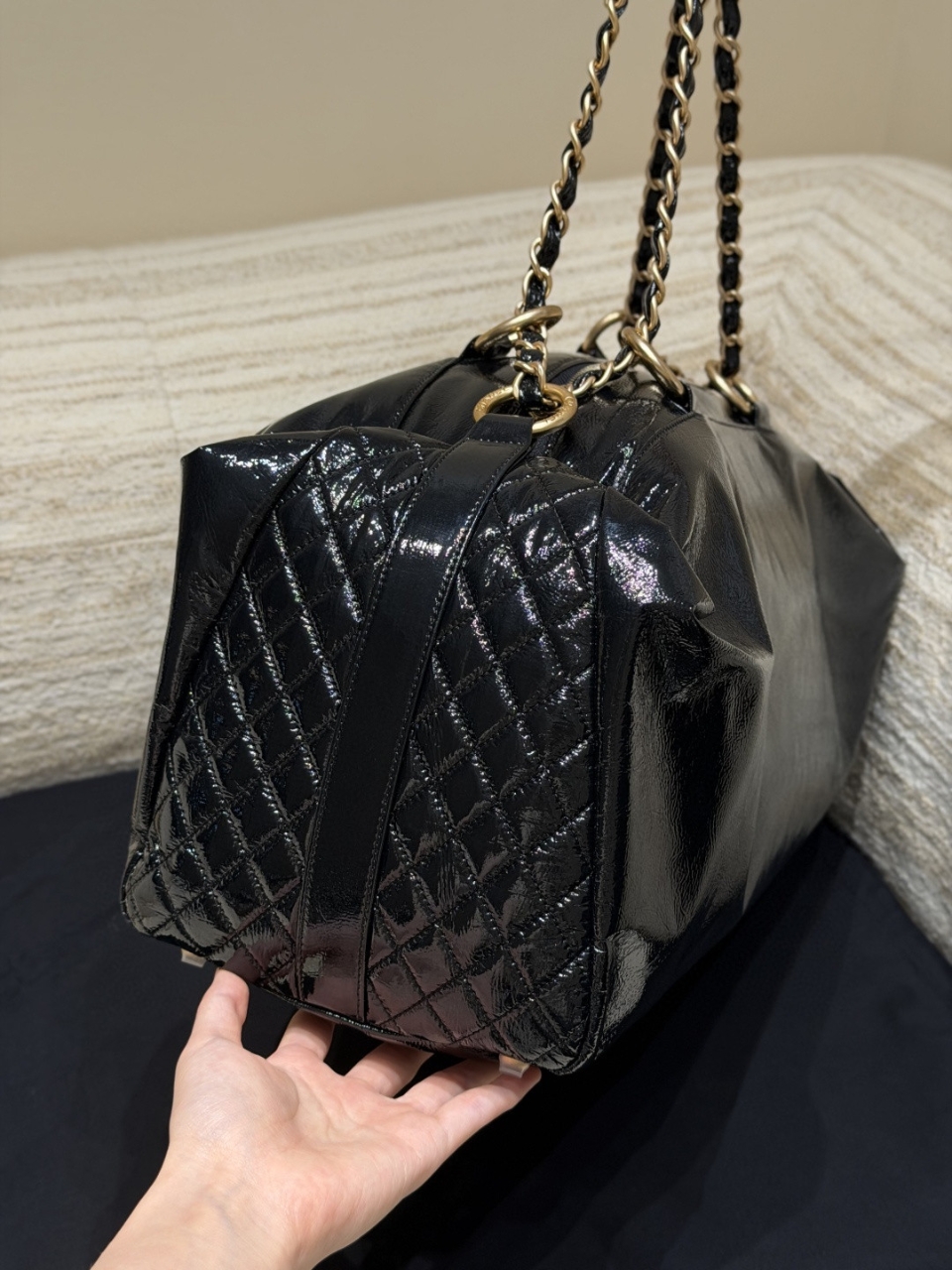 레트로 모델 또 갖고 왔어요. 2008~2009 레퍼런스의 반딱반딱 하는 페이던트 느낌의 이탈리아 수입 정품 유광 소가죽으로 만들었습니다. 하드웨어 역시 이탈리아 수입산이고요, 복제하느라 힘 좀 들인 모델이라고 합니다. 사이즈 : 47 × 27 × 16cm 1880471JDS