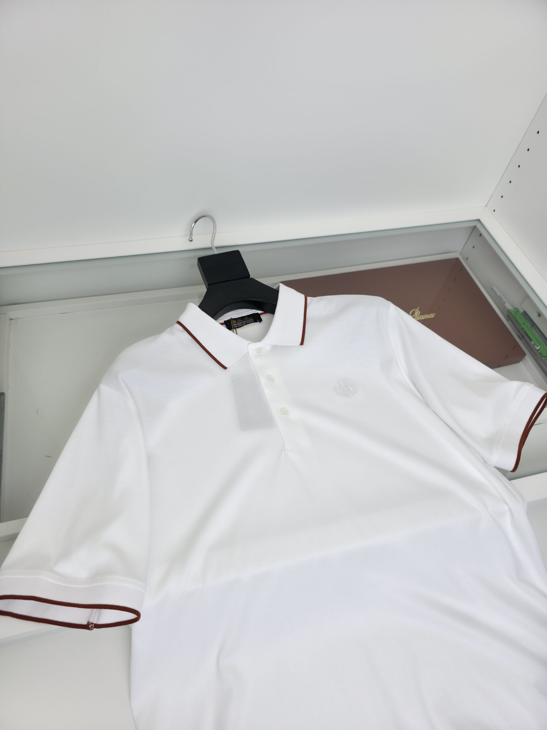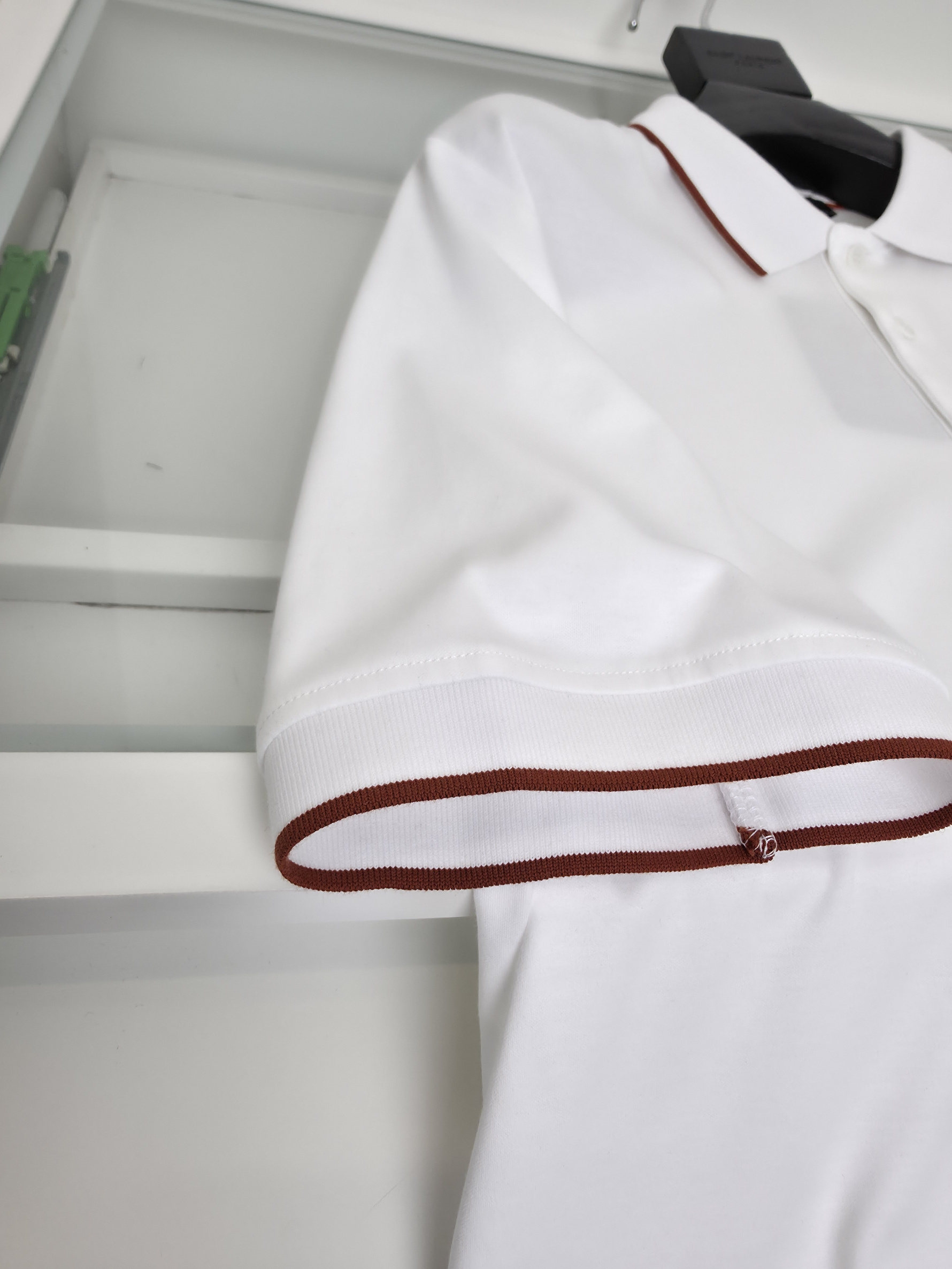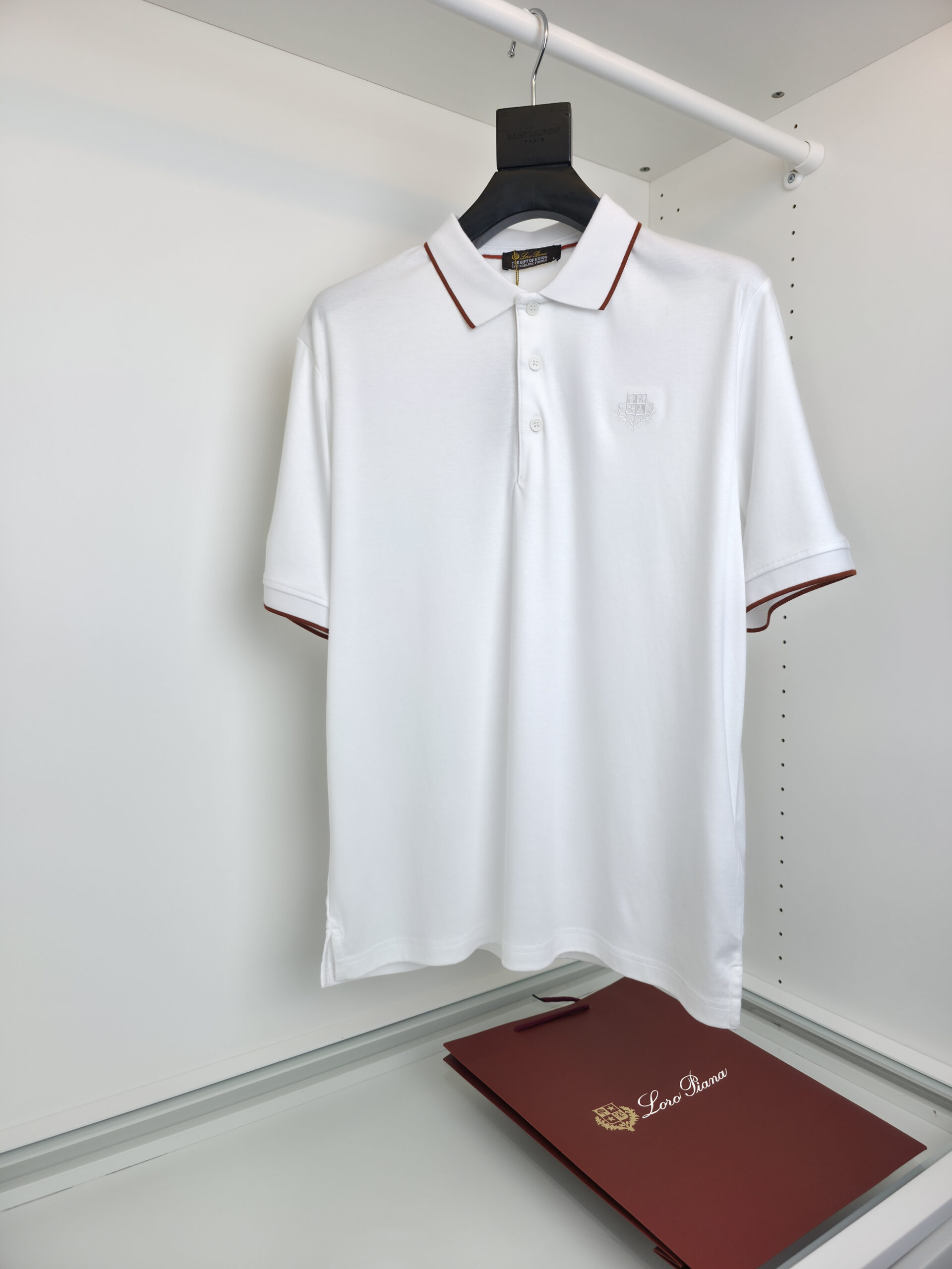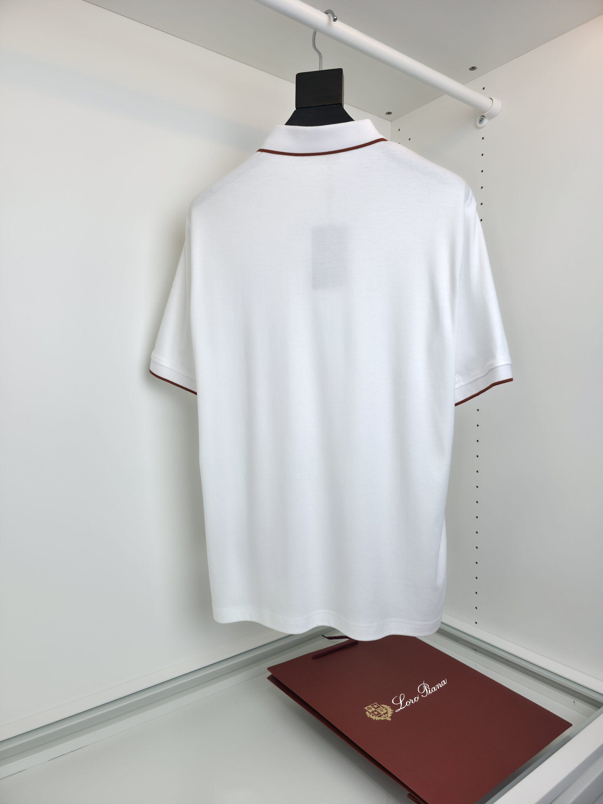 Loro Piana 2026 봄여름 클래식 비즈니스 캐주얼 남성 반팔 폴로 셔츠입니다. 고전적인 스타일링 옷장의 필수 아이템인 싱글 버튼 터틀넥 스타일 터틀넥 스트라이프 컬러의 비즈니스 통근으로 전체적으로 날씬하고 스타일리쉬한 비즈니스 캐주얼 디자인으로 다양한 상황에 손쉽게 매치할 수 있습니다. 겉감은 전체 기장의 면 소재로 표면에 촉촉한 광택감이 있어 상체가 편안하고 피부 친화적이며 통기성이 좋은 제품